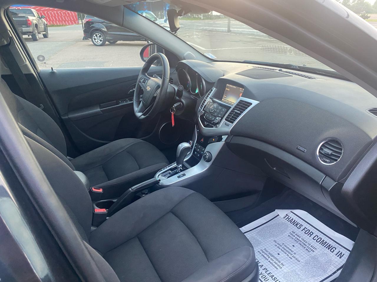 Very clean, in good condition, and is ready for you to take home. This Chev Cruze LT is a very nice sedan, with the comfortability you have the nice features of backup camera, cruise control, , Onstar, bluetooth and so much more. If you're looking for something reliable and very good on gas this is definitely the car for you.