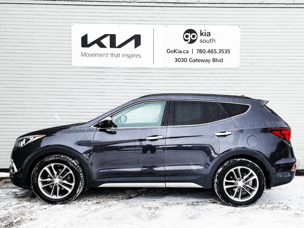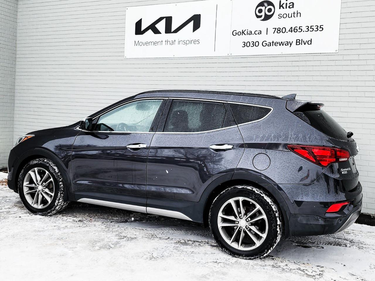 Recent Arrival! Odometer is 65889 kilometers below market average! Platinum Graphite 2017 Hyundai Santa Fe Sport 2.0T AWD 6-Speed Automatic with Shiftronic 2.0L I4 DGI DOHC 16V Turbocharged4-Wheel Disc Brakes, ABS brakes, Air Conditioning, Alloy wheels, AM/FM radio: SiriusXM, Automatic temperature control, Brake assist, CD player, Delay-off headlights, Driver door bin, Driver vanity mirror, Dual front impact airbags, Dual front side impact airbags, Electronic Stability Control, Exterior Parking Camera Rear, Four wheel independent suspension, Front anti-roll bar, Front Bucket Seats, Front dual zone A/C, Front fog lights, Front reading lights, Fully automatic headlights, Heated door mirrors, Heated front seats, Illuminated entry, Knee airbag, Occupant sensing airbag, Outside temperature display, Overhead airbag, Overhead console, Panic alarm, Passenger door bin, Passenger vanity mirror, Power door mirrors, Power driver seat, Power steering, Power windows, Rear anti-roll bar, Rear window defroster, Rear window wiper, Remote keyless entry, Roof rack: rails only, Security system, Speed control, Speed-sensing steering, Split folding rear seat, Spoiler, Steering wheel mounted audio controls, Tachometer, Telescoping steering wheel, Tilt steering wheel, Traction control, Trip computer, Turn signal indicator mirrors, Variably intermittent wipers.IN HOUSE FINANCING, IN HOUSE LEASING AVAILABLE O.A.C.If you are interested and need more information call or message our sales team, we will be glad to help you now!!Our knowledgeable sales staff will help assist you with every step. To book a test drive or receive further information give us a call at (780)-465-3535 or email us: kiahmed@gokia.caAt Go Kia, were happy to help! Proudly serving Edmonton and all of Alberta including St. Albert, Wetaskiwin, Fort McMurray, Grande Prairie, Drayton Valley, Nisku, Leduc, Rimby, Hinton, St. Paul, Lloydminster, Edson, and all of Western Canada!An AMVIC Licensed Business. Value Priced vehicles are aggressively priced and may require some additional mechanical or cosmetic repairs, all disclosed on a Vehicle Assessment Report!This vehicle may be leased or financed by anyone*, however, due to the recent increase in fraudulent vehicle purchase activity, Go Kia reserves the right to decline a transaction on suspicion of non-retail intentions including but not limited to wholesaling or exporting.*on approved credit, see dealer for details
