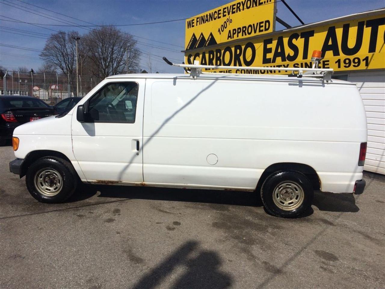 WE FINANCE EVERY ONE , 23 YEARS SERVING THE COMMUNITY,SAME LOCATION, SAME#4162870020 ------------------------------------------------------------------------------------------------------------------------------------ 4D , AUTO , CARGO VAN , EQUIPPED WITH AIR CONDITION , WHITE EXTERIOR ON GREY INTERIOR , HAS INTERNAL SHELVES AND ROOF RACK , AND MUCH MORE , LOCAL NEW CAR TRADE , LOOKS GOOD EXCEPT SOME RUST ON QUARTER PANEL , WAS REPAINTED , ORIGINAL COLOUR WAS RED AS ALL ROGERS TRUCK ARE ALL OVER EVERY DAY BUT WELL SERVICED , 263000kms all hi way kms ------------------------------------------------------------------------------------------------------------------------------------ PLEASE MAKE SURE ALL INFORMATION AND OPTIONS ( AIR CONDITION) ARE CORRECT AND WORKING PRIOR TO PURCHASE , ADVERTISING COULD HAVE MISTAKES (COPY &PAST) PLEASE READ ALL DOCUMENTATION ( HISTORY ) AND BILL OF SALE , DUC FEE $495 WILL APPLY IN FINANCE DEALS ------------------------------------------------------------------------------------------------------------------------------------ ALL FUNDS HAS TO BE CERTIFIED ONLY . *All Prices are unfit prices plus HST. Vehicle is not drivable if not certified and not E-tested. SAFETY AND E TEST ARE AVAILABLE FOR $695 WITH 36 DAYS SAFETY WARRANTY ON ALL THE SAFETY ITEMS ------------------------------------------------------------------------------------------------------------------------------------ At SCARBORO E AUTO LTD we try and make your dreams come true at www.scarboroeauto.ca Good credit, bad credit or no credit at all. Our team of finance managers have worked their magic arranging finance or a lease for many of scarboro e auto?s customers. scarbro e auto, used car and all makes certified used vehicle volume dealer is located in scarborough ( pickering boarder) 4663 Kingston roads. Just 2 lights east of morning side scarborough. Not far from pickering , Ajax, Whitby, Oshawa, Markham, Toronto, New market, Richmond hill, Thorn hill, Agincourt, Milliken, Malvern and much of the greater Toronto area or GTA. if you are looking for a used Honda civic, a used Honda , a used toyota , a used nissan, a used mazda, a used , a used suzuki, a used kia, a used subaru, a used ford,a used chevy,a used gmc, a used pontiac, a used buick, a used bmw , a used mercedes , a used vw , a used audi , a used van or truck. scarboro e auto is waiting for you with one of the largest inventories in the greater Toronto and Pickering area. scarboro e auto has a great selection of certified used vehicles. our certified used vehicles are listed in auto trader, Toronto?s kijiji and our own web site www.scarboroeauto.ca to be eligible as one of the oldest certified used car . scarboro e auto offer preferred finance rates, powertrain warranty, e tested, safety and certified. Come in or call us at 416 287 0020 and ask us about a used car , a used van, a used SUV. Do not wait for a Saturday sale to take advantage of one of the biggest selection of used low price cars, vans and used SUV's in Ontario. scaroboro e auto ltd is your best