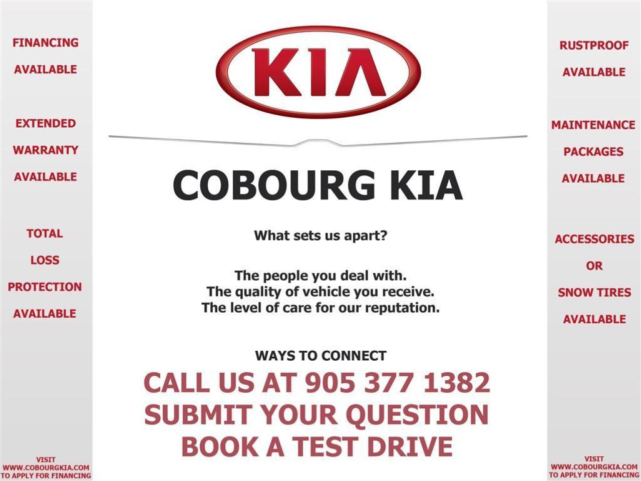 At Cobourg Kia, we deliver great vehicles with a great customer experience. Cobourg Kia is a family owned dealership established in 2001. Cobourg Kia proudly serves the Cobourg, Port Hope, Baltimore, Grafton, Castleton, Gores Landing, Roseneath, Colborne, Brighton, Warkworth, Trenton, Belleville, Peterborough, Bowmanville, Clarington, Newcastle, Courtice, Oshawa & Whitby area. We can help arrange your Auto Financing through top tier banks such as RBC, BMO, Scotia, TD & more. Find out more about Cobourg Kia by visiting their website: www.CobourgKIA.com - CREDIT CHALLENGED? - WE CAN HELP 99% APPROVALS www.CobourgCreditCentre.com