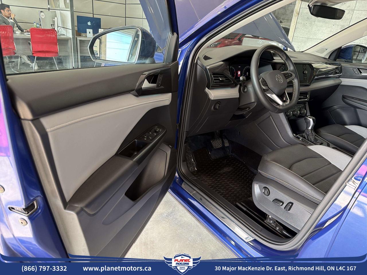 2023 Volkswagen Taos Highline -- 63,600 km, Cornflower Blue, non-smoker.