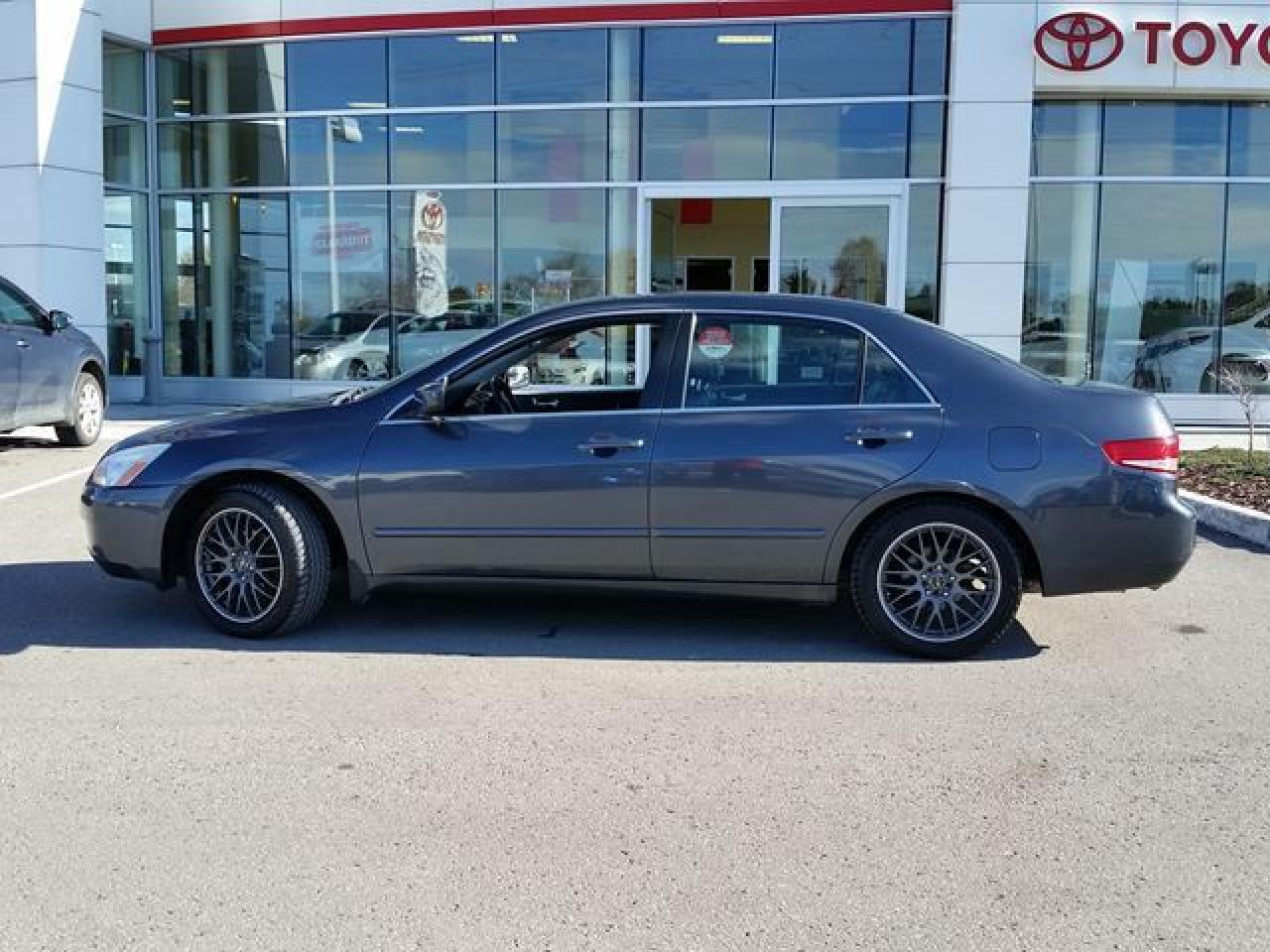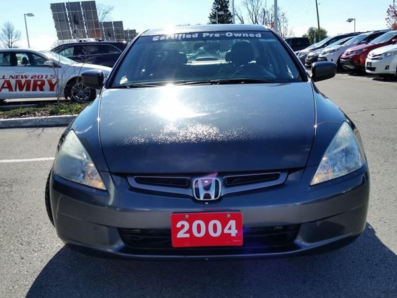 This "Graphite Pearl" 2004 Honda Accord is the EX-L Model. This vehicle was just traded in and is ACCIDENT-FREE! This Accord is nicely equipped with Custom Alloy Rims, Power Windows / Lock / Mirrors, Heated Seats, MoonRoof, Leather Seats, Cruise Control and more! Recent Reconditioning on this vehicle includes a FRESH Oil Change, NEW Engine Air Filter, NEW Rear Wheel Bearing, NEW Front Brake Rotors and NEW Rear Brake Rotors. This vehicle is being offered full Dealer Certified and E-Tested. Call in for more information and to book a Road Test Today!