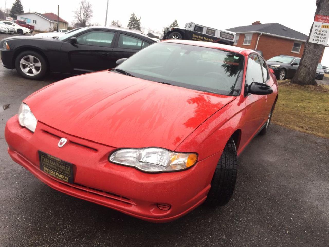 This 2005 Chevrolet Monte Carlo LS Coupe is in EXCELLENT CONDITION and has LOW KM'S (ONLY 92,664), Comes with Power Windows/Doors/Mirrors/Steering, Comfortable Interior and spacious trunk. Won't Last Long. This car has lots of life left and ONLY $5983 + HST + Licensing. Call 1-519-686-7253 or Visit 443 Exeter Rd. That Car Place