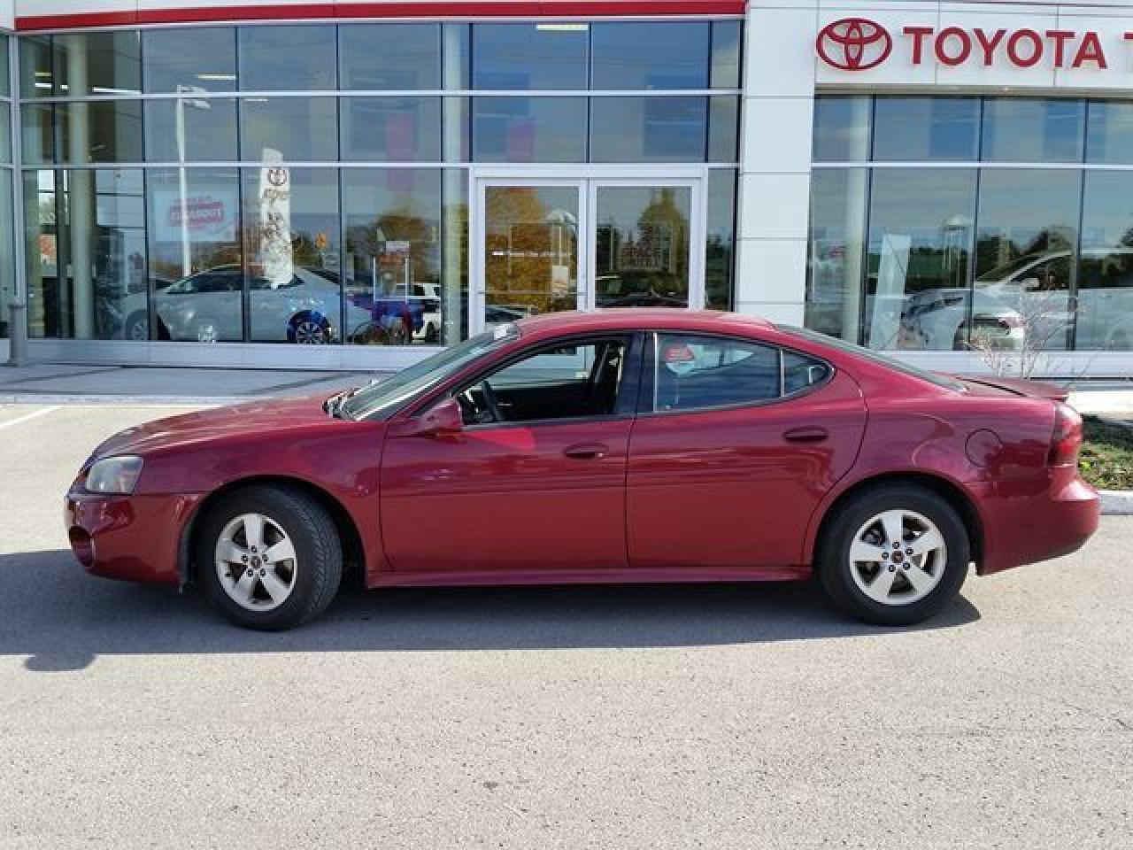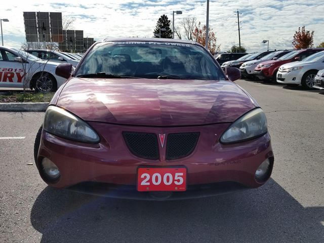 This "Sport Red Metallic" 2005 Pontiac Grand Prix is the 3.8L V6. This Grand Prix is being offered Fully Dealer Certified! This Grand Prix is equipped with Alloy Rims, Cloth Seats, A/C, Keyless Entry, Fog Lamps and much more. Recent Reconditioning on this vehicle includes NEW Front Brake Pads and Rotors, NEW Rear Brake Pads and Rotors, NEW Emergency Brake Cables and a NEW Engine Air Filter. Call in today for more information and to book your Road Test!