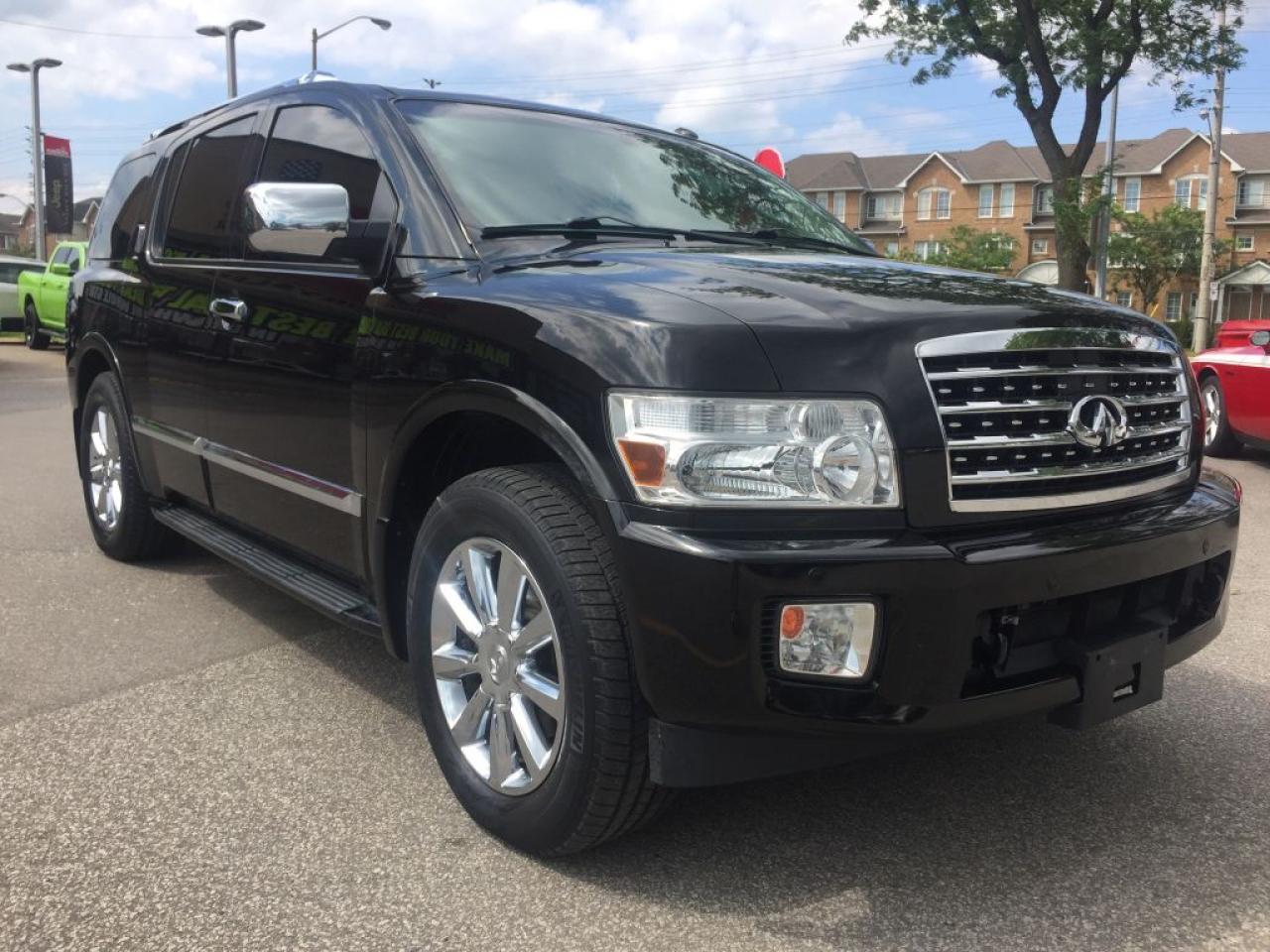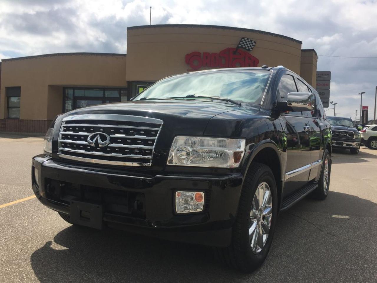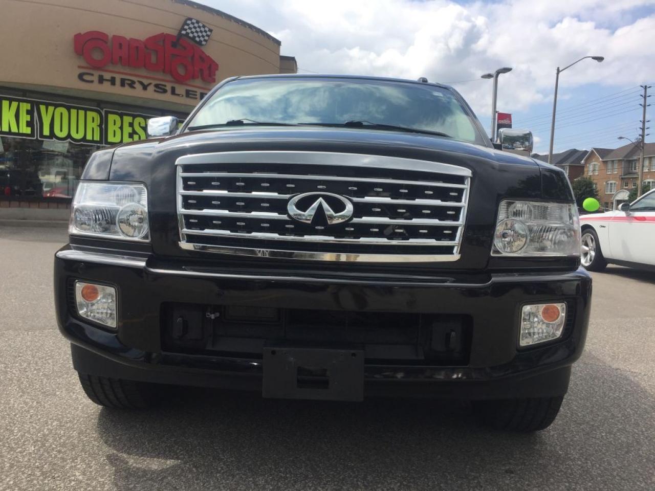 **2008 INFINITI QX56, THIS 8 PASSENGER VEHICLE IS EQUIPPED WITH LEATHER SEATING, GPS NAVIGATION POWER SUNROOF REAR HEATED SEATS, TRAILER TOW PACKAGE, 4 WHEEL DRIVE, CLEAN CARPROOF TWO SETS OF KEYS HEATED FRONT SEATS AND MUCH MORE. VEHICLE LOCATED AT ROADSPORT CHRYSLER 2851 EGLINTON AVENUE EAST TORONTO ONTARIO 416-264-2501...