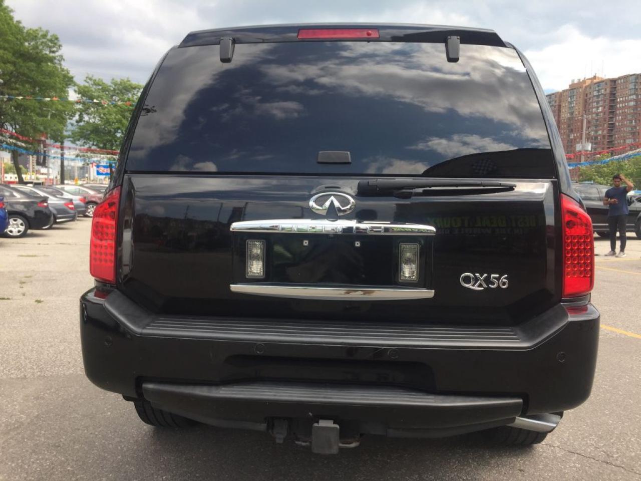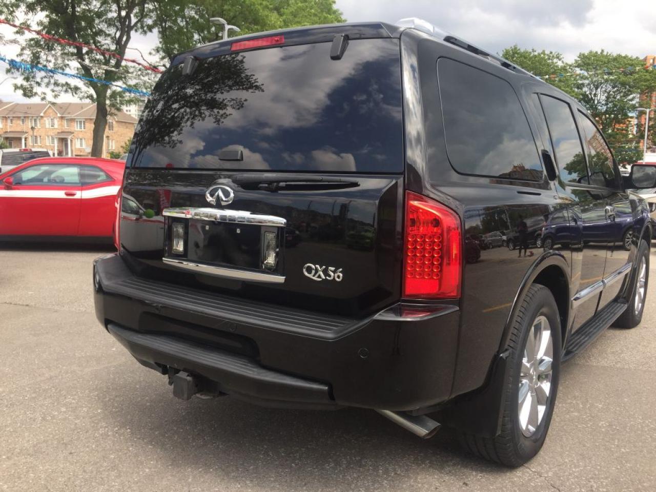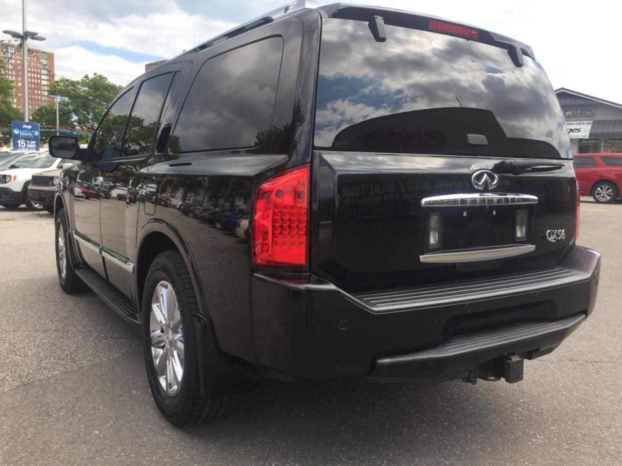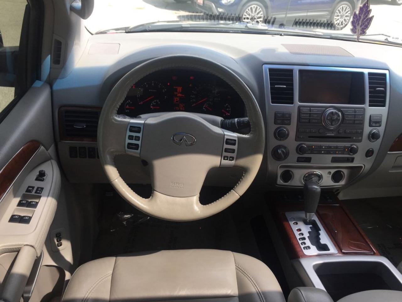 **2008 INFINITI QX56, THIS 8 PASSENGER VEHICLE IS EQUIPPED WITH LEATHER SEATING, GPS NAVIGATION POWER SUNROOF REAR HEATED SEATS, TRAILER TOW PACKAGE, 4 WHEEL DRIVE, CLEAN CARPROOF TWO SETS OF KEYS HEATED FRONT SEATS AND MUCH MORE. VEHICLE LOCATED AT ROADSPORT CHRYSLER 2851 EGLINTON AVENUE EAST TORONTO ONTARIO 416-264-2501...