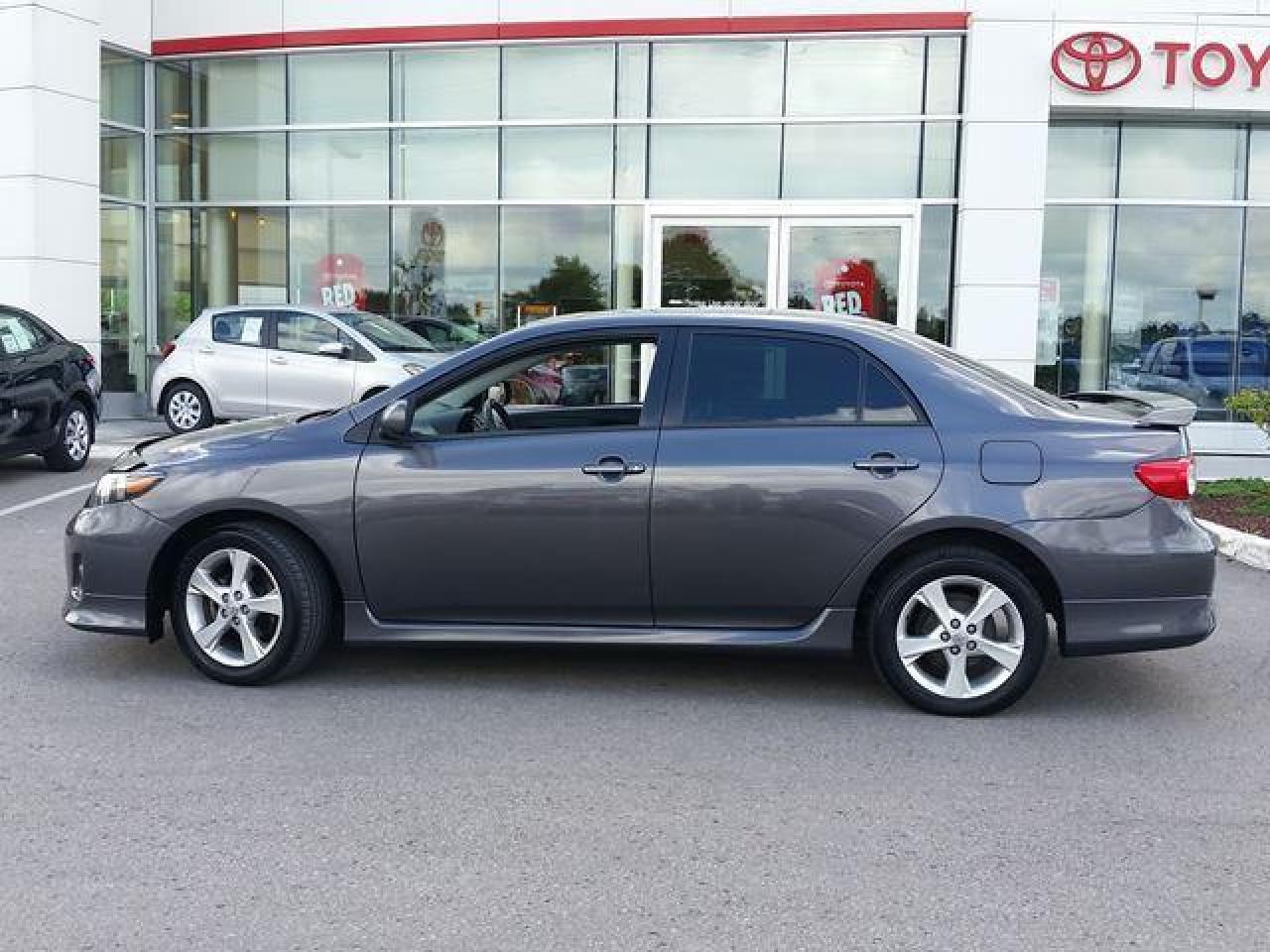 This "Magnetic Grey" 2013 Toyota Corolla is the S Package and has had only ONE Previous Owner. Features include Alloy Rims, Navigation, Push-Button Start, Leather, Moonroof, Spoiler, A/C and much more. Recent reconditioning includes a FRESH Oil Change, NEW Front Brake Pads and Rotors, 2 NEW Tires, and a Rear Brake Service. Call in today for more information and to book a Road Test!