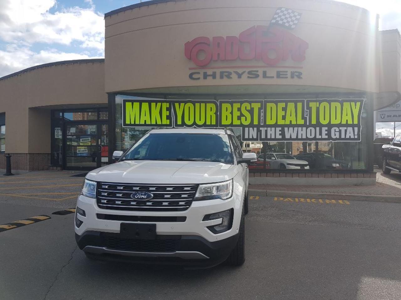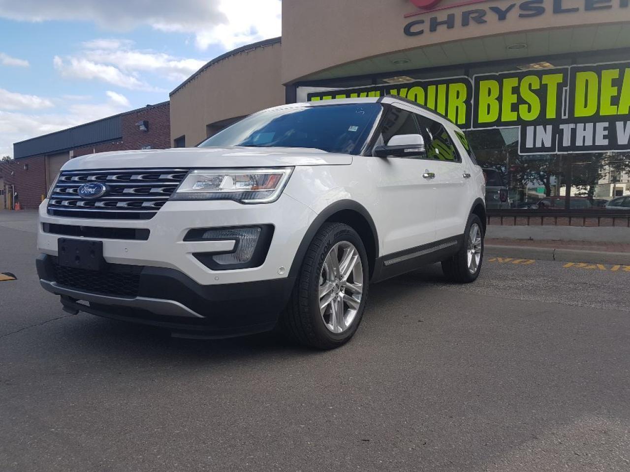 **2016 FORD EXPLORER LIMITED.. THIS NICE EXPLORER HAS LEATHER SEATS AND IS POWERED BY A 3.5L ENGINE LEATER SEATS AND MUCH MORE. ENJOY THE SUN WITH THE DUAL PANE PANORAMIC SUNROOF, HEATED AND COOLED SEATS,20" WHEELS,REMOTE START, REAR CAMERA, TOUCH SCREEN SYNC SYSTEM AND MUCH MORE. FINISHED IN WHITE WITH BLACK LEATHER, CLEAN CAR PROOF AND TWO SETS OF KEYS.FORMER DAILY RENTAL, VEHICLE LOCATED AT ROADSPORT CHRYSLER 2851 EGLINTON AVE EAST, 416-264-2501..