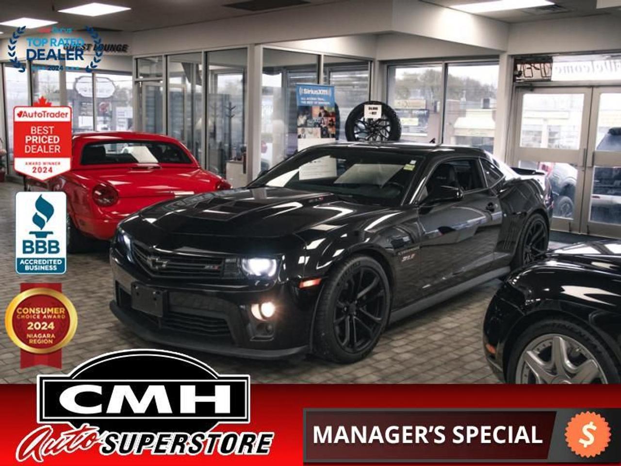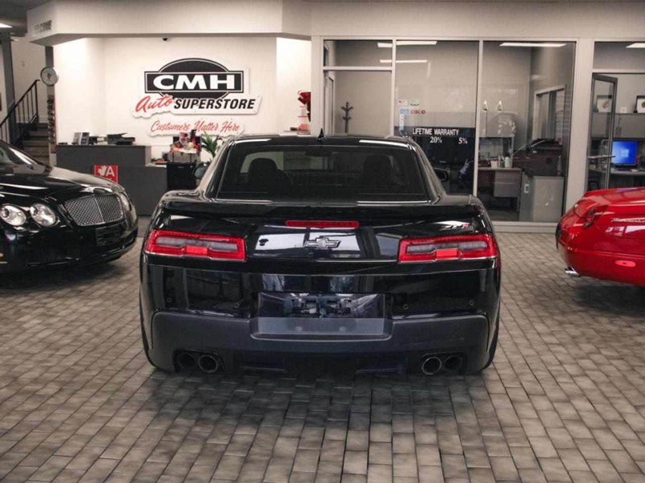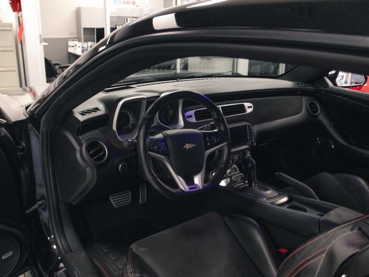 For tire-burning power and Hollywood looks, it doesn't get much better than the 2014 Chevrolet Camaro. For the 2014 Chevrolet Camaro, you'll instantly spot the car's sleeker front grille, new headlights and taillights, and minor changes all around. But the return of the Z/28 moniker adds a whole new level to Camaro performance this year.This coupe has 114,150 kms. It's black in colour and is major accident free based on the CARFAX Report . It has an automatic transmission and is powered by a 580HP 6.2L 8 Cylinder Engine.