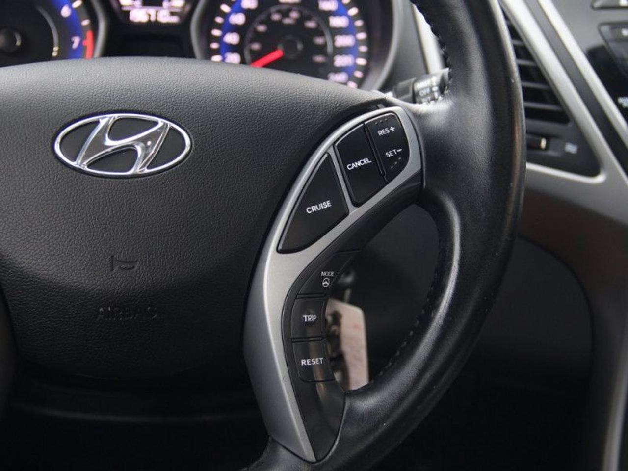 Our Elantra's trim level is GLS. The GLS trim is a fine mix of premium features, packed in a refined cabin and excellent efficiency. It comes with standard options such as power sunroof, front fog lamps, 6 speaker stereo, rearview camera, heated front seats, remote keyless entry, cruise control, air conditioning, power door locks with auto-lock and much more.