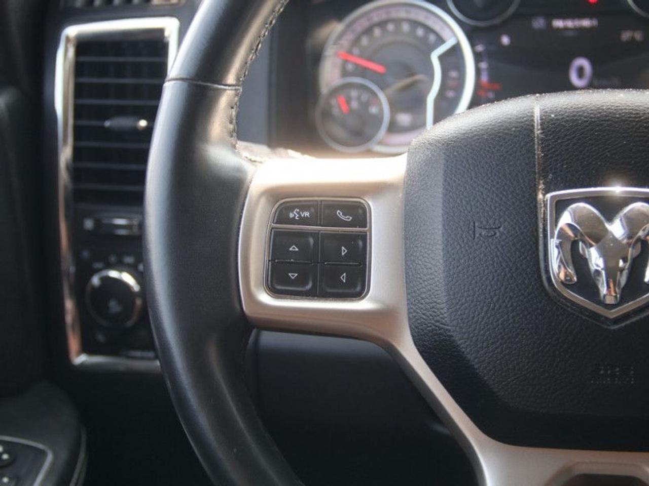 Our 1500's trim level is Laramie. Upgrade to a new level of class in a pickup truck with this Ram Laramie. It comes with leather seats which are heated and ventilated in front, a heated steering wheel, dual-zone automatic climate control, a Uconnect infotainment system with Bluetooth, SiriusXM, and 10-speaker audio, chrome exterior trim including chrome-clad aluminum wheels, a rearview camera, rear park assist, and more. This vehicle has been upgraded with the following features: Leather Seats, Cooled Seats, Bluetooth, Premium Sound Package, Heated Seats, Heated Steering Wheel, Rear View Camera.