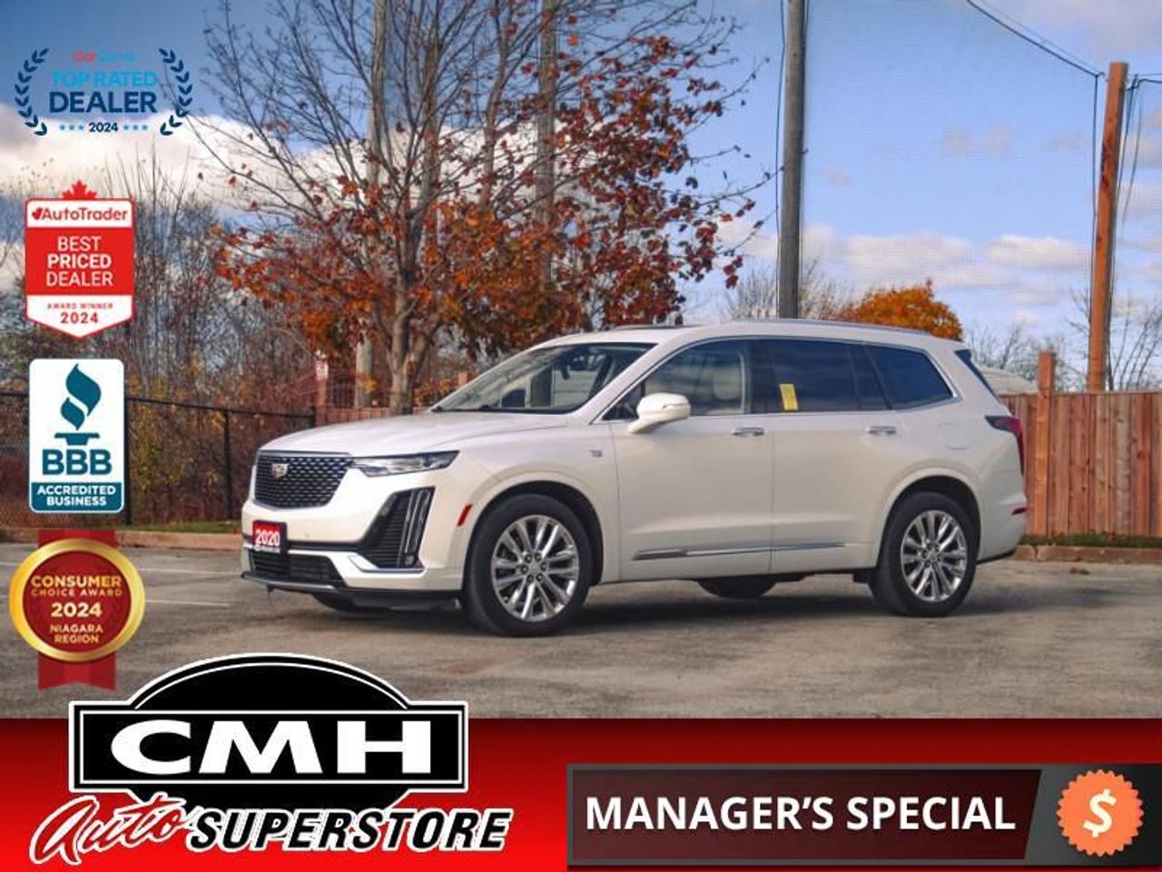 Our XT6's trim level is Premium Luxury. This all new XT6 is ready to take the compact three row segment by storm with a double size sunroof, wood grain interior accents, unique Galvano grille and exterior trim, heated and cooled seats, hands free liftgate, 4G WiFi, wireless charging, 3 row leather seating, heated leather steering wheel, remote start, hands free keyless entry, tri zone automatic climate control, engine idle stop/start, intelligent brake assist, 20 inch aluminum wheels, LED lighting with automatic highbeams, heated power side mirrors with turn signals, and rain sensing wipers. Awesome technology features include Android Auto and Apple CarPlay compatible 8 inch touchscreen, 6 USB inputs, voice recognition, SiriusXM, lane keep assist with departure warning, blind zone monitoring, pedestrian braking, automatic emergency braking, front and rear parking assistance, and a vibrating safety alert seat. This vehicle has been upgraded with the following features: Leather Seats, Sunroof, Driver Assistance, Unique Galvano Exterior, Wood Grain Interior, 4g Lte Wifi, Android Auto.