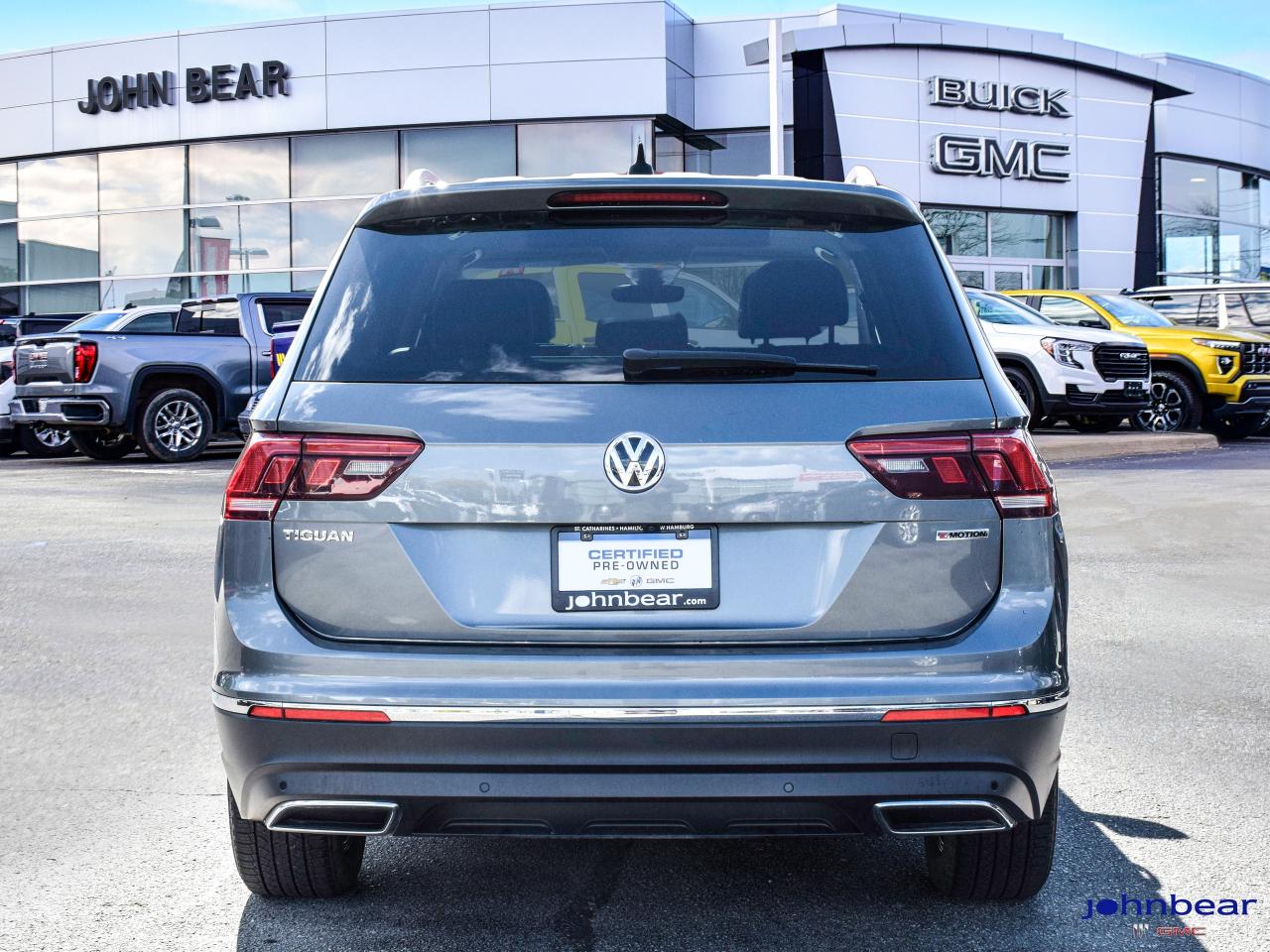 2020 Volkswagen Tiguan Highline 4Motion *REMOTE START*, *LEATHER*, *PANORAMIC ROOF*, *NAVIGATION*, *SUNROOF*, *BACK-UP CAMERA*, *NOT A RENTAL*, *LOCAL TRADE*, *GM FACTORY CERTIFIED*, *MARKET VALUE PRICING*, *ONE OWNER*, APPLE CAR PLAY AND ANDROID AUTO, AWD. 4Motion 2.0L TSI 8-Speed Automatic with Tiptronic AWD Certified. Certification Program Details: * 4.99% APR Financing on Select Models for 24mo* of PreOwned Vehicles * 3-month or 5,000 kilometres Comprehensive Limited Warranty Coverage * 24/7 Roadside Assistance * CARFAX® Vehicle History Report Sirius XM 3 months prepaid service * 150-Point Inspection * 30 Days or 2,500 kilometres exchange privilege SEE DEALER FOR ADDITIONAL DETAILS Reviews: * Owners and experts alike almost universally count the Tiguans ride quality, highway manners, interior, and overall easy-to-drive character among its most valuable assets. The central touchscreen infotainment system and all-digital instrument cluster are commonly listed as feature favourites, as they add a high-tech flair to the driving environment. Source: autoTRADER.ca John Bear Buick GMC offers many automotive products and services. When you visit our store, what you can expect is quality both in our selection of pre-owned vehicles and from our world-class sales team. We offer Market Based Pricing with some of the best value in the Niagara region.