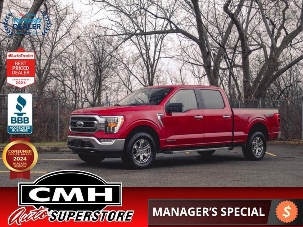 The perfect truck for work or play, this versatile Ford F-150 gives you the power you need, the features you want, and the style you crave! With high-strength, military-grade aluminum construction, this F-150 cuts the weight without sacrificing toughness. The interior design is first class, with simple to read text, easy to push buttons and plenty of outward visibility. With productivity at the forefront of design, the 2021 F-150 makes use of every single component was built to get the job done right!This Crew Cab 4X4 pickup has 73,887 kms. It's red in colour and is major accident free based on the CARFAX Report . It has an automatic transmission and is powered by a 430HP 3.5L V6 Cylinder Engine.