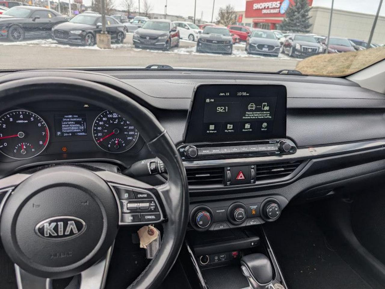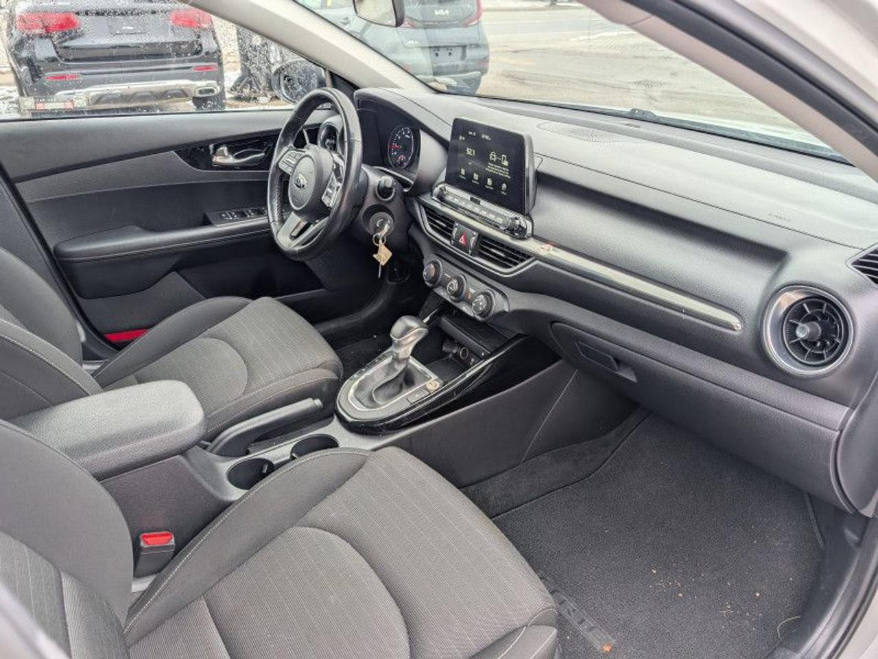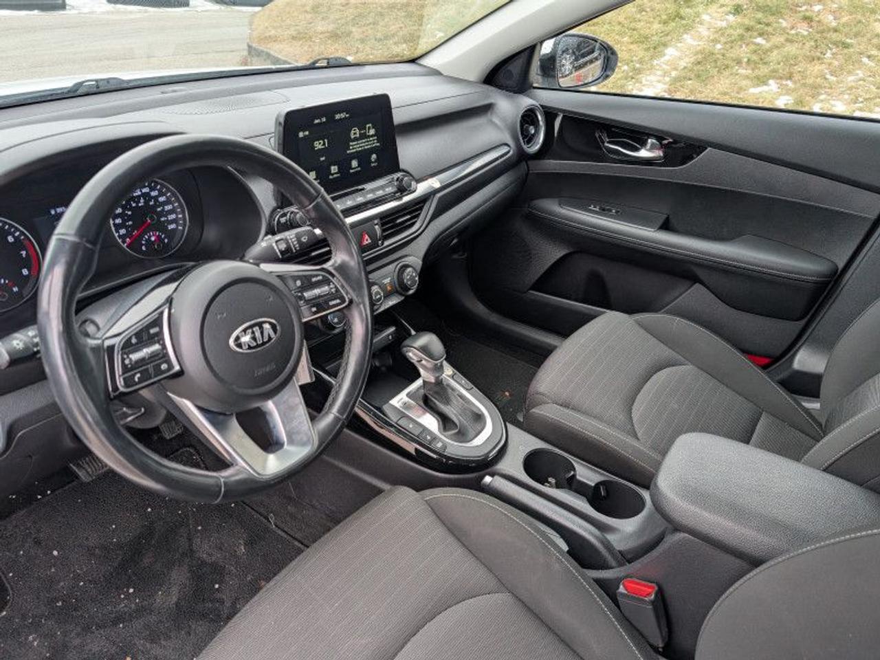Our Forte's trim level is EX+. This Kia Forte EX+ adds a sunroof, LED lighting with automatic high beam assist, LED taillights and larger aluminum wheels to the already incredible EX trim. Additional features include wireless charging, lane keep assistance, blind spot monitoring with rear cross traffic alert, driver attention alerts, forward collision avoidance assistance, heated front seats and steering wheel, leather wrapped steering wheel and shift knob and remote keyless entry. Infotainment is provided by an impressive system complete with an 8 inch display, Apple CarPlay, Android Auto, Bluetooth streaming audio and USB inputs.