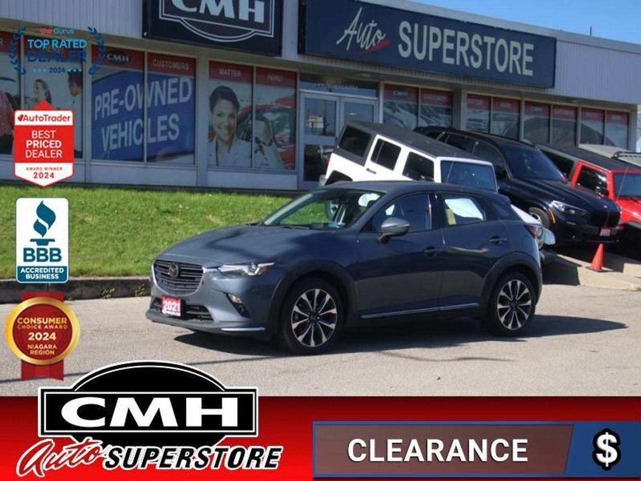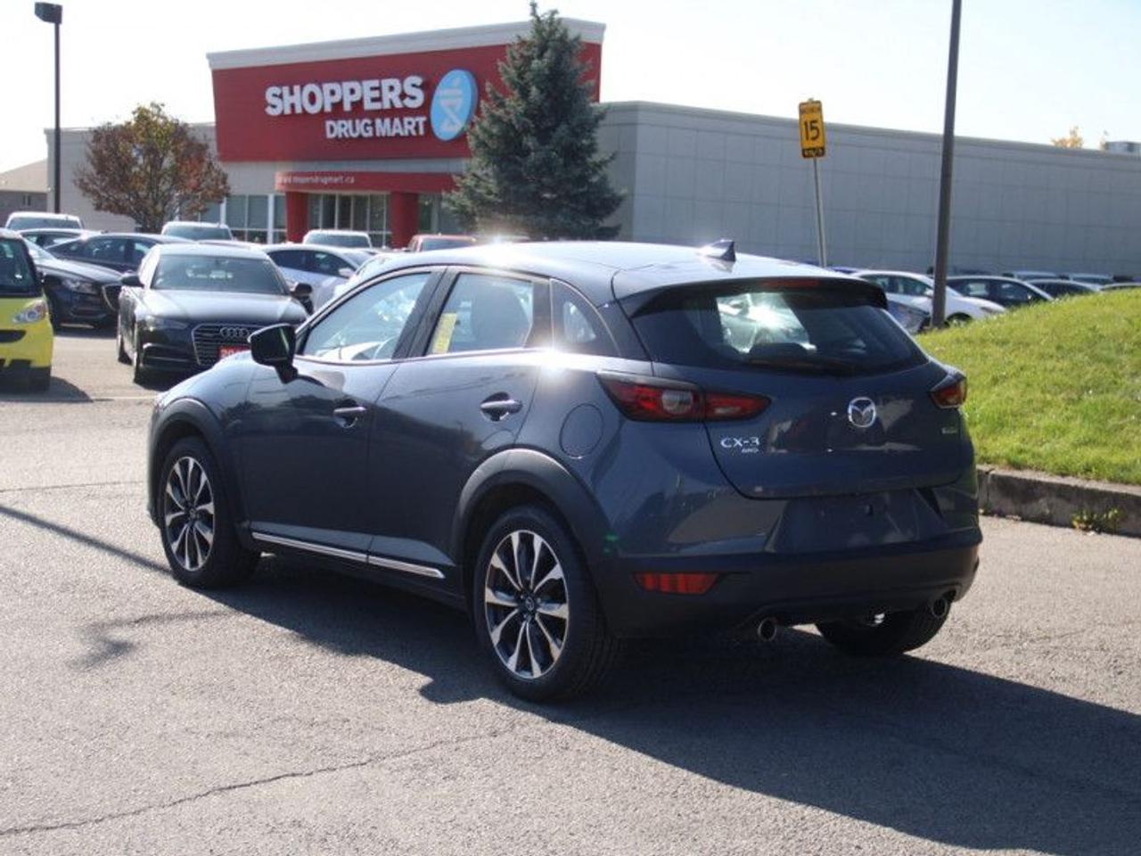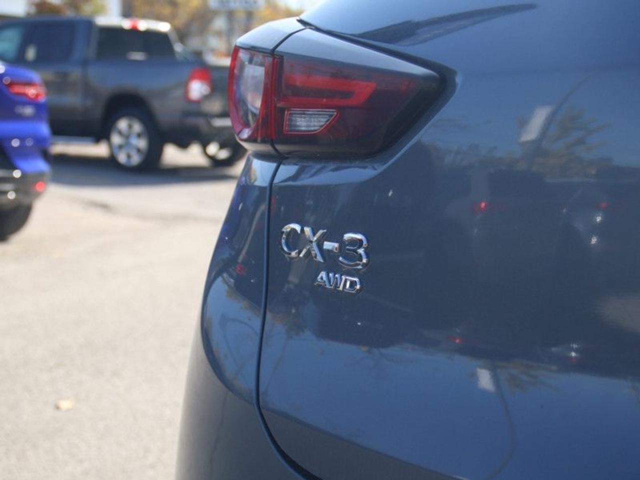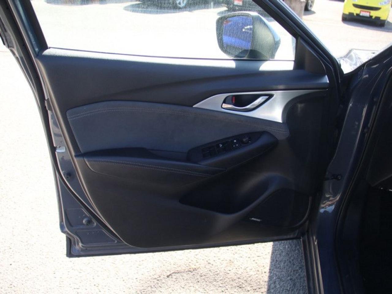 Our CX-3's trim level is GT. This CX-3 GT comes with plenty of amazing technology and luxurious features such as an active driving display on the windshield, larger and more stylish aluminum wheels, a 7 inch colour touchscreen with Mazda Connect, navigation, wireless Apple CarPlay and Android Auto. It also comes with a power sunroof, heated seats with power / memory settings for the driver, a heated steering wheel, distance pacing cruise control, lane departure warning, traffic sign recognition, Bose premium audio, blind spot monitoring, smart city brake support LED signature lighting and an advanced proximity keyless entry system. Additional features are plush leather seats, soft touch surfaces with unique stitching detail, suede interior trim and chrome exterior accents. This vehicle has been upgraded with the following features: Heads Up Display, Sunroof, Leather Seats, Navigation, Aluminum Wheels, Heated Seats, Heated Steering Wheel.