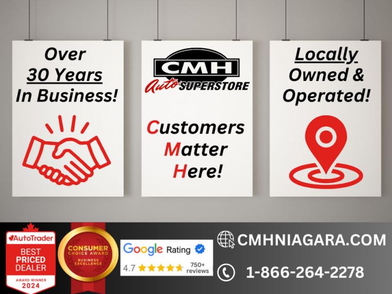 Trade-ins are welcome! Financing available OAC ! Price INCLUDES a valid safety certificate! Price INCLUDES a 60-day limited warranty on all vehicles except classic or vintage cars. CMH is a Full Disclosure dealer with no hidden fees. We are a family-owned and operated business for over 30 years! o~o