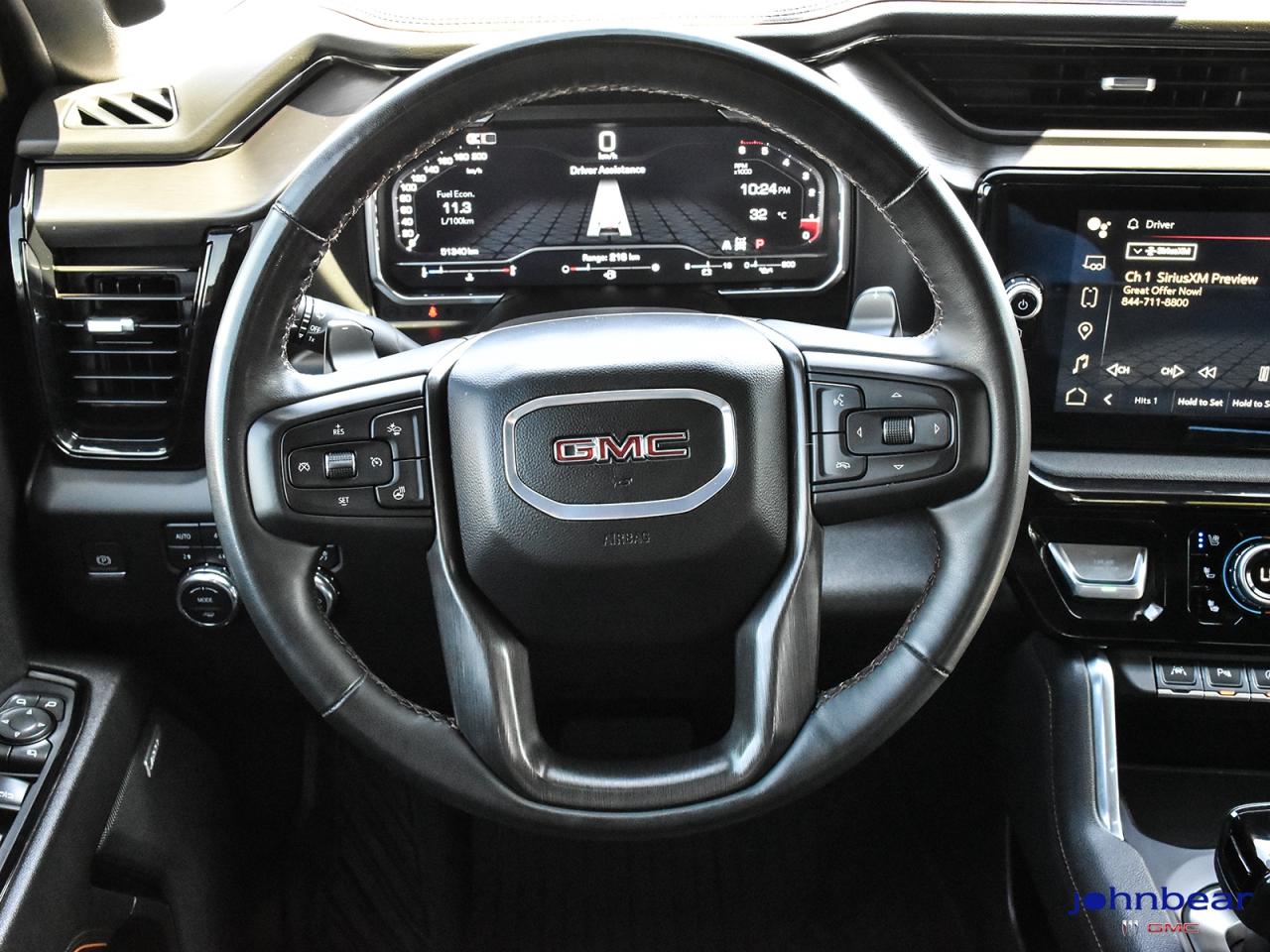 2024 GMC Sierra 1500 AT4 *REMOTE START*, *LEATHER*, *NAVIGATION*, *SUNROOF*, *BACK-UP CAMERA*, *NOT A RENTAL*, *LOCAL TRADE*, *GM FACTORY CERTIFIED*, *MOONROOF*, *MARKET VALUE PRICING*, *CLEAN CARFAX REPORT*, *LANE DEPARTURE WARNING*, 10-Speed Automatic, 4WD, Jet Black w/Kalahari Accents w/Perforated Front Leather Seat Trim. 3.0L I6 10-Speed Automatic 4WD Odometer is 5051 kilometers below market average! Certified. Certification Program Details: * 4.99% APR Financing on Select Models for 24mo* of PreOwned Vehicles * 3-month or 5,000 kilometres Comprehensive Limited Warranty Coverage * 24/7 Roadside Assistance * CARFAX® Vehicle History Report Sirius XM 3 months prepaid service * 150-Point Inspection * 30 Days or 2,500 kilometres exchange privilege SEE DEALER FOR ADDITIONAL DETAILS John Bear Buick GMC offers many automotive products and services. When you visit our store, what you can expect is quality both in our selection of pre-owned vehicles and from our world-class sales team. We offer Market Based Pricing with some of the best value in the Niagara region.