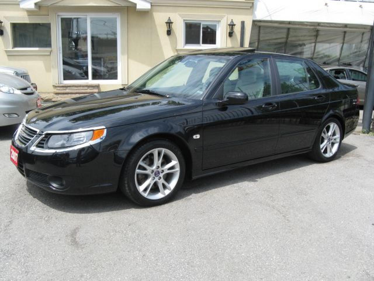 Carproof Clean, 1 owner from Saab Canada, Automatic tiptronic, 2.3L 4 cyl. turbo, air cond., ABS, air bags, tilt, cruise, AM/FM CD/AUX. Fully loaded, p/sunroof, leather int., p/seats, keyless entry, park sensors, xenon lights and 17"alum rims. Only 76,000 kms. $16,995 $4000 down $295/mth tax-included. Balance of factory warranty. Mint cond. Sale priced. Black ext on tan leather interior. Call today. Price does not include certification or e-test. (cert & e-test are available for $495 extra)