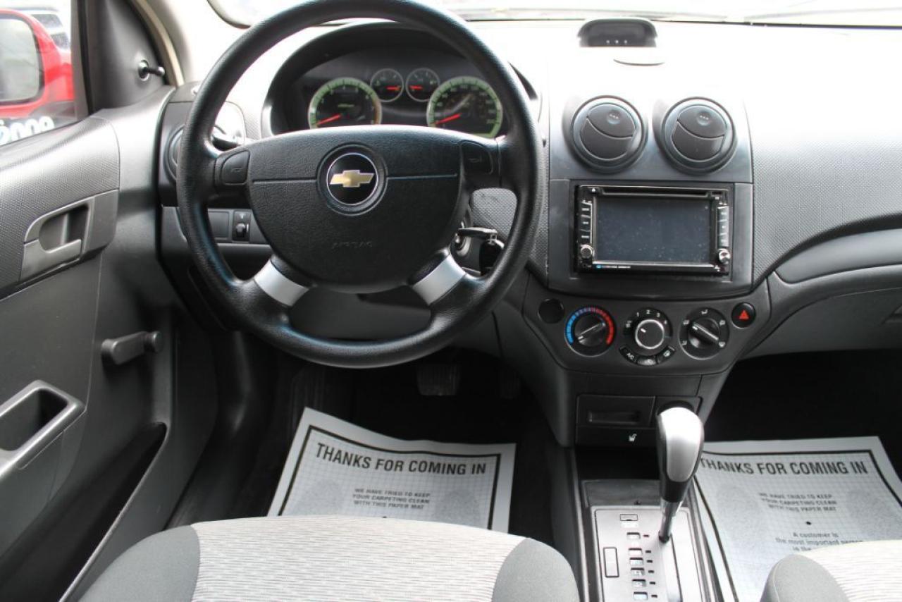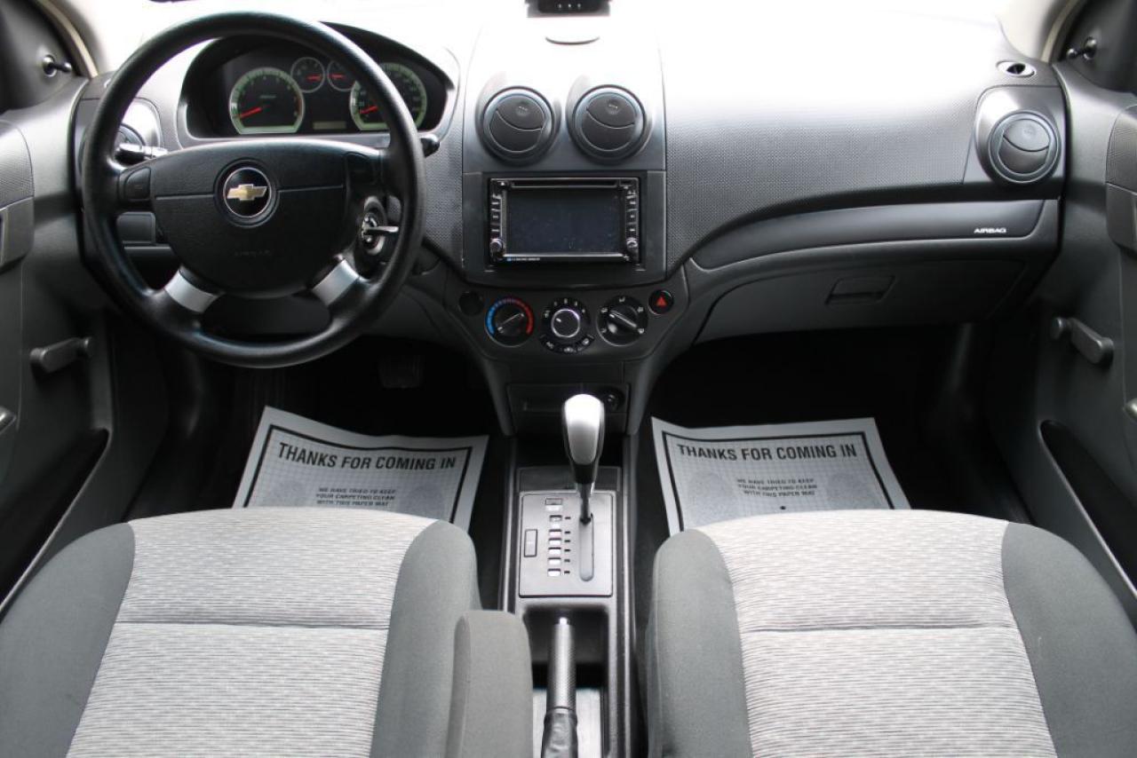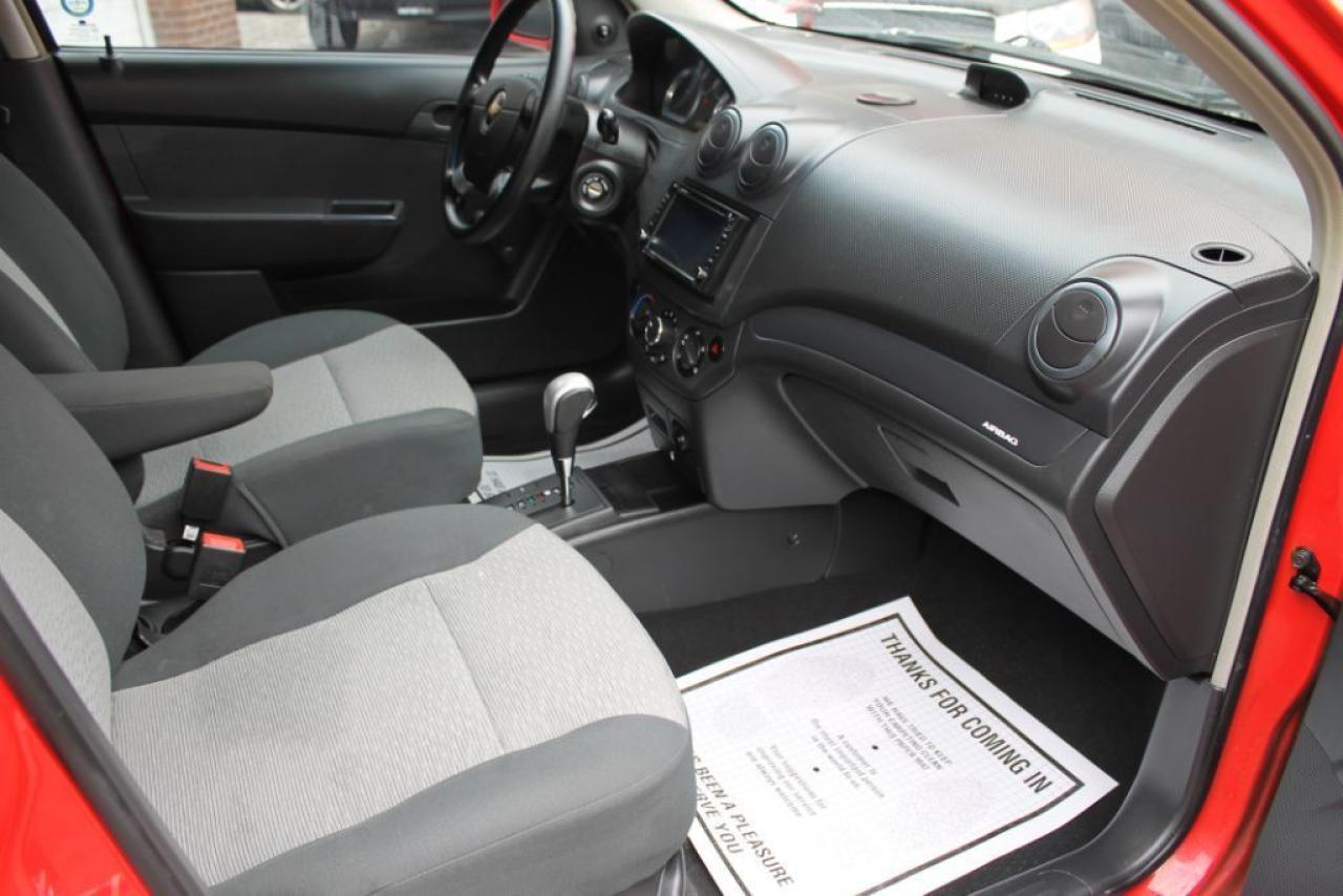 BEAUTIFUL CHEVY AVEO! EXTREMELY CLEAN LOCAL ONTARIO VEHICLE WITH NO ACCIDENTS! REMOTE STARTER INCLUDED! VERY WELL MAINTAINED! COMES WITH AFTERMARKET STEREO, NAVIGATION, REAR VIEW CAMERA, BLUETOOTH, AUX, AM/FM, CD PLAYER, DVD PLAYER, WIFI CONNECTIVITY PLUS MORE! COMES CERTIFIED, AND COMES WITH A FULL CARPROOF HISTORY REPORT! ALSO COMES WITH A 24 MONTH POWERTRAIN WARRANTY INCLUDED IN THE PRICE! FINANCING AVAILABLE OAC!