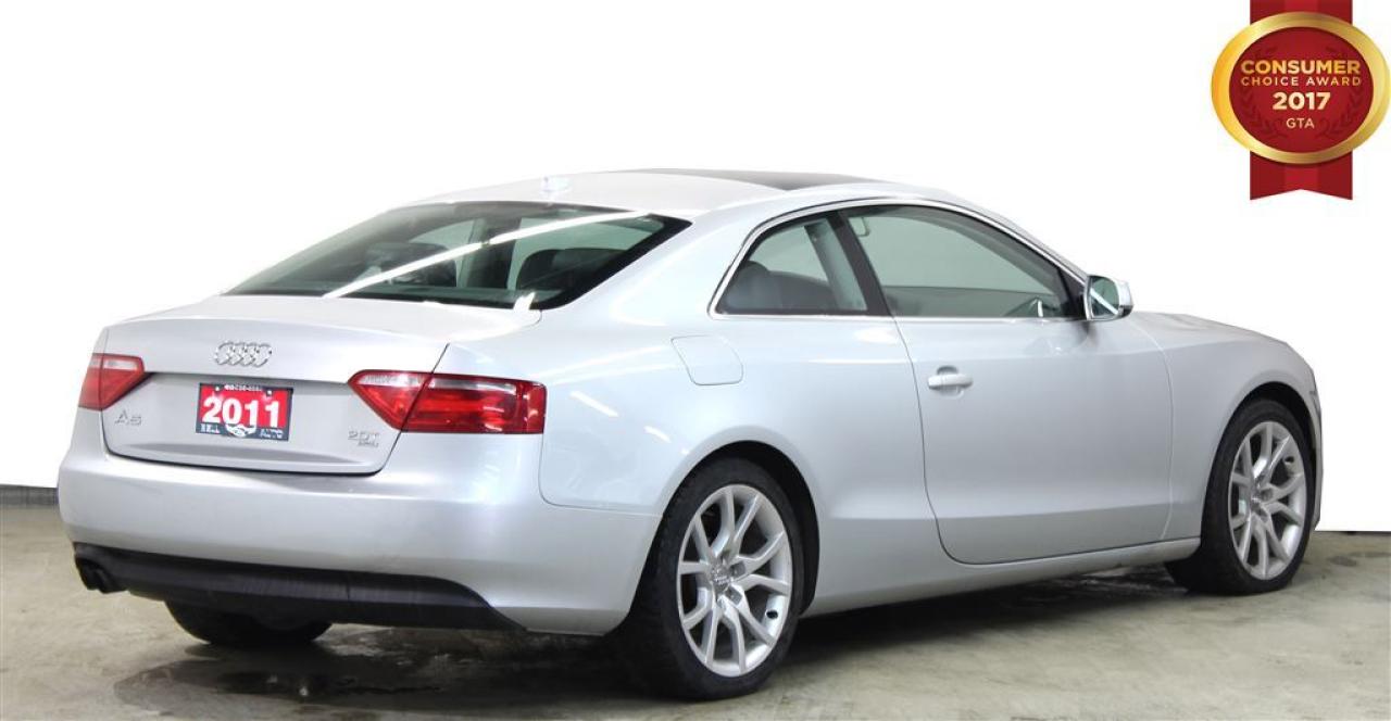 DONT MISS OUT ON THIS AMAZING AUDI A5! LUXURY AND POWER HAVE NEVER LOOKED SO GOOD! SLEEK DESIGN AND 2.0L ENGINE WILL HAVE YOU ZOOMING AROUND IN STYLE! COME IN AND TAKE A LOOK AT OUR NEW INVENTORY EVERY WEEK! SOME GREAT FEATURES YOU CAN FIND ARE: -SUNROOF -HEATED MIRRORS -HEATED SEATS AND SO MUCH MORE! VEHICLE CONDITIONING: This vehicle has been kept in fantastic condition. This car will have you feeling like your driving on a cloud with its amazing performance. Interior is immaculate and holds no odor or stains on either the carpets or headliner, as well the leather seats have no tears in them. IF YOU WOULD LIKE MORE INFORMATION ON THIS VEHICLE FEEL FREE TO CALL 1- 877- 854- 4872 OR COME TO BELL AUTO TODAY TO VIEW THE CAR! FINANCE ANY CREDIT! ~ ACCEPT VEHICLE TRADE-IN'S! ~ COME TODAY FOR YOU NEW VEHICLE! You will have a pleasant shopping experience that is fun, informative, and never high pressured. Stop by our dealership or give us a call for more information. All vehicle's can be Safety Standards Certificate for an additional $399, if no Safety Standards Certificate then as per OMVIC Regulations the vehicle is deemed to be not drivable, no Safety Standards Certificate. At Bell Auto our number one goal is to provided excellent customer service to all of our customers. We offer the lowest vehicle prices in the market in addition to best financial banks available to provide you with the lowest and most affordable interest rates & monthly payments. In addition we have two certified mechanical and a mechanical shop, detailing and service department in the back of our dealership. Our customer relationship means the most to our company as we have been in business for 16 plus years, with a selection of inventory of over 200 vehicles. Come today to our spacious family environment showroom, or staff is delighted to meet all of you. Bell Auto is a OMVIC Dealership that has a A+ Rating on the Better Business Bureau, 2 Year winners of the Consumer Choice Awards for the Best Dealership In the G.T.A. and Surrounding Areas, The Readers Choice Award Winners for Detailing, Over All Dealership, Import Dealership and Used Car Dealership