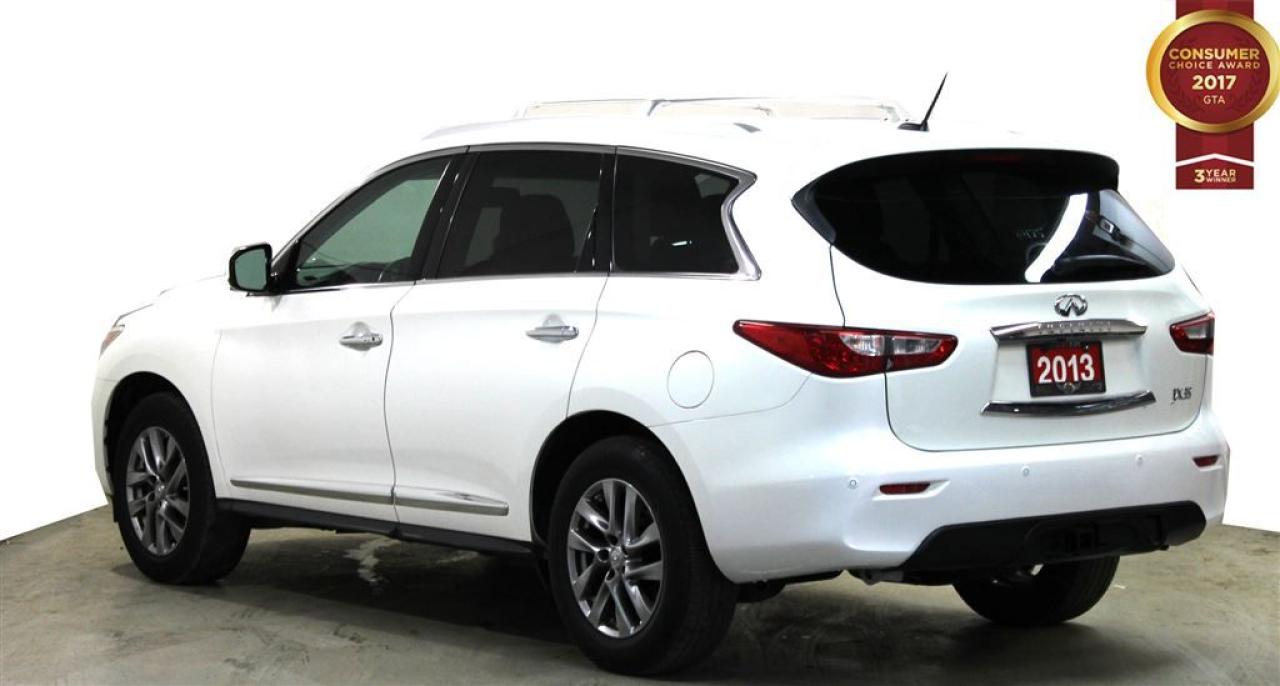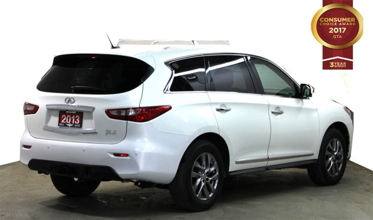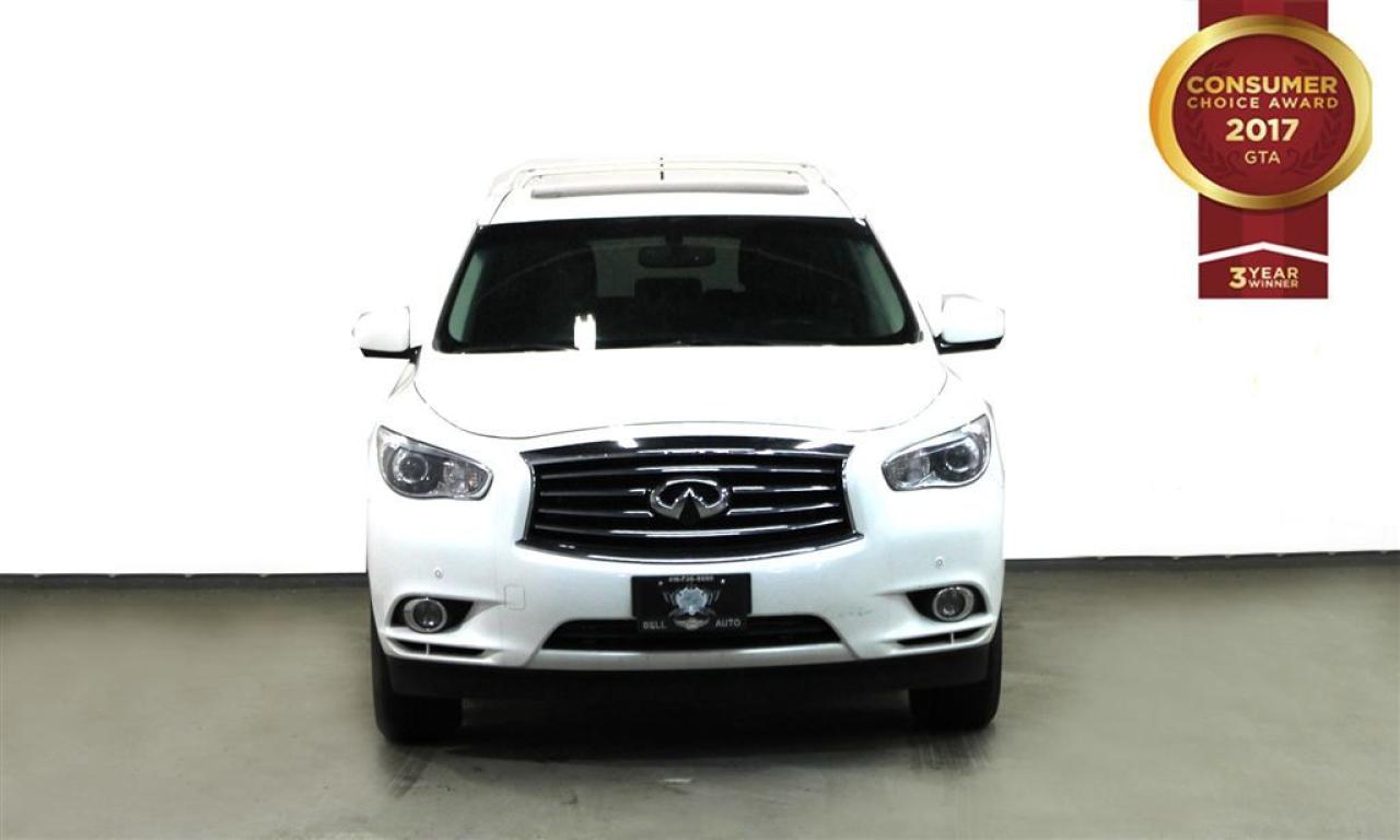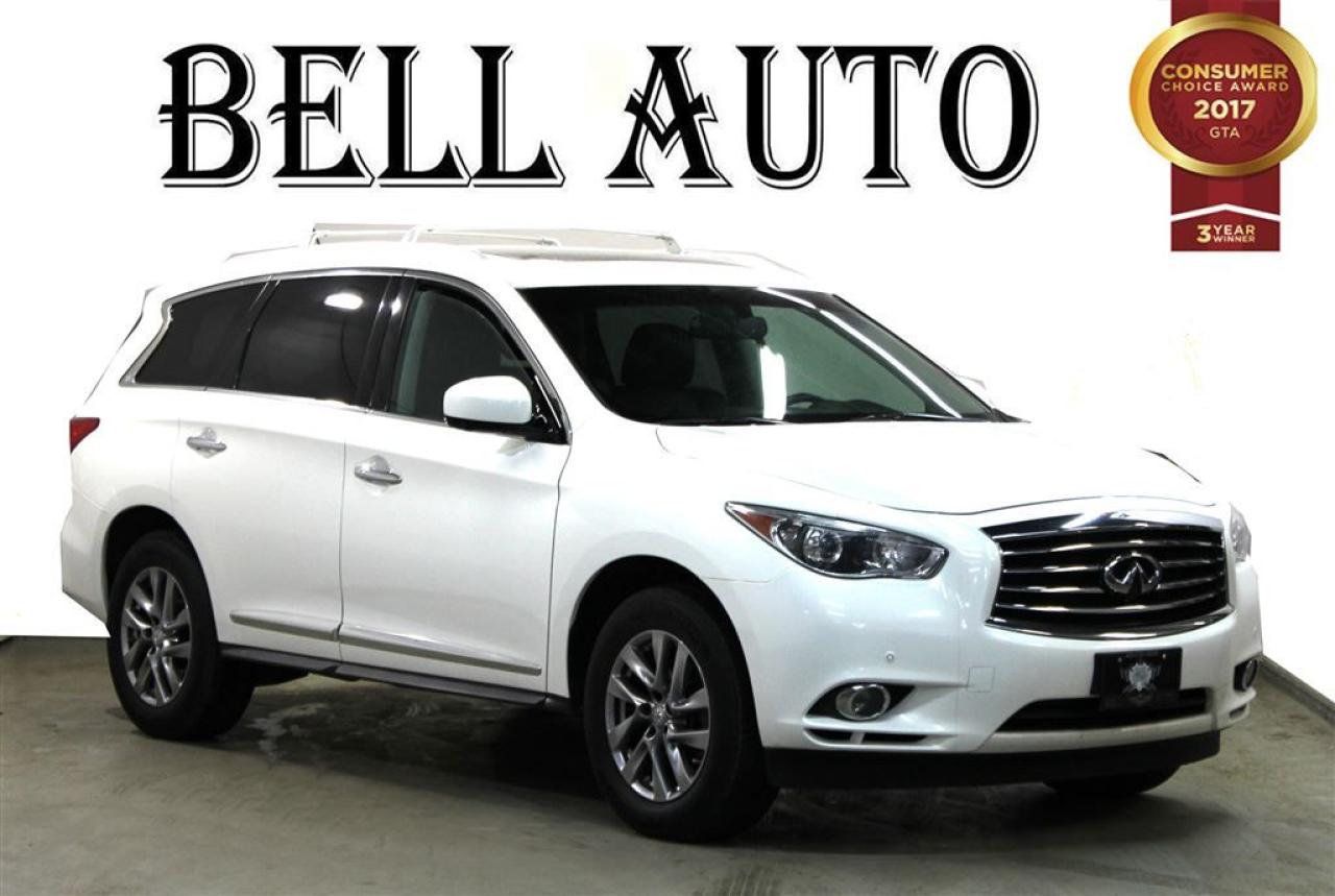 You're going to love the 2013 INFINITI JX35! Offering crisply executed design, generous interior space and a fully capable powertrain! This vehicle has achieved Certified Pre-Owned status, by passing INFINITI's comprehensive certification process. INFINITI prioritized practicality, efficiency, and style by including: a trailer hitch, rear wipers, and the power moon roof opens up the cabin to the natural environment. Under the hood you'll find a 6 cylinder engine with more than 250 horsepower, and all wheel drive keeps this model firmly attached to the road surface. Our knowledgeable sales staff is available to answer any questions that you might have. They'll work with you to find the right vehicle at a price you can afford. Please don't hesitate to give us a call. All vehicle's can be Safety Standards Certificate for an additional $399, if no Safety Standards Certificate then as per OMVIC Regulations the vehicle is deemed to be not drivable, no Safety Standards Certificate