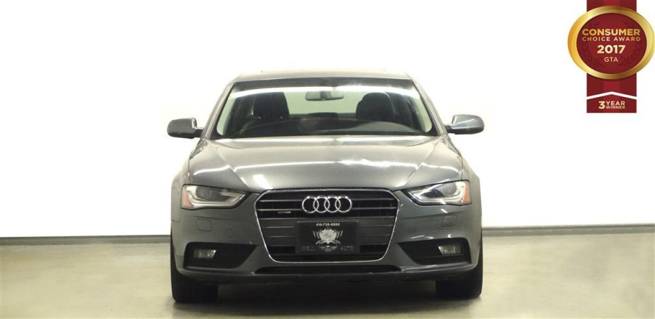 At Bell Auto our number one goal is to provided excellent customer service to all of our customers. We offer the lowest vehicle prices in the market in addition to best financial banks available to provide you with the lowest and most affordable interest rates & monthly payments. In addition, we have two certified mechanics and a mechanical shop, detailing and service department in the back of our dealership. Our customer relationship means the most to our company as we have been in business for 16 plus years, with a selection of inventory of over 200 vehicles. Come today to our spacious family environment showroom, or staff is delighted to meet all of you. You will have a pleasant shopping experience that is fun, informative, and never high pressured. Stop by our dealership or give us a call for more information. All vehicle's can be Safety Standards Certificate for an additional $399, if no Safety Standards Certificate then as per OMVIC Regulations the vehicle is deemed to be not drivable, no Safety Standards Certificate. Bell Auto is a OMVIC Dealership that has an A+ Rating on the Better Business Bureau, 3 Year winners of the Consumer Choice Awards for the Best Dealership In the G.T.A. and Surrounding Areas, The Readers Choice Award Winners for Detailing, Over All Dealership, Import Dealership and Used Car Dealership. Step into the 2014 Audi A4! First and foremost is the striking exterior. This 4 door, 5 passenger sedan still has less than 120,000 kilometers! Audi prioritized practicality, efficiency, and style by including: leather upholstery, telescoping steering wheel, and the power moon roof opens up the cabin to the natural environment. Under the hood you'll find a 4 cylinder engine with more than 200 horsepower, and for added security, dynamic Stability Control supplements the drivetrain. We pride ourselves on providing excellent customer service. Stop by our dealership or give us a call for more information.