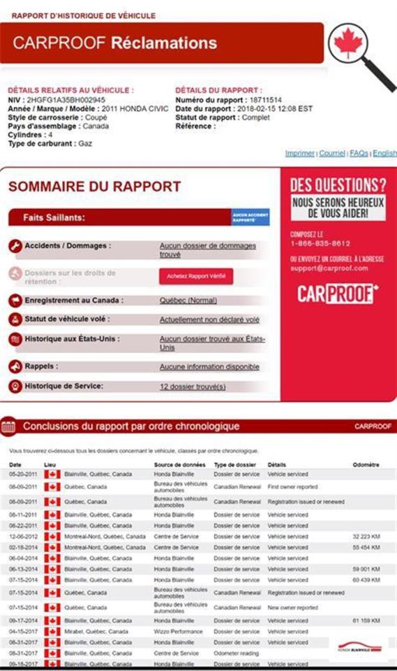 2011 Honda Civic a 30$ par semaine avec 0$ comptant, prix de vente 7967$ sur un terme de 72 mois à 5.99% FINANCEMENT FACILE Le coût de l'intérêt pour ce prêt est de 1517$ et l'obligation totale (montant emprunté + les intérêts) est de 9484$, conditionnel à l'approbation de votre crédit, taxes et immatriculation en sus