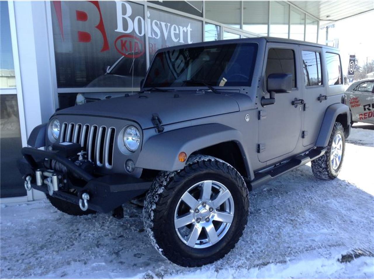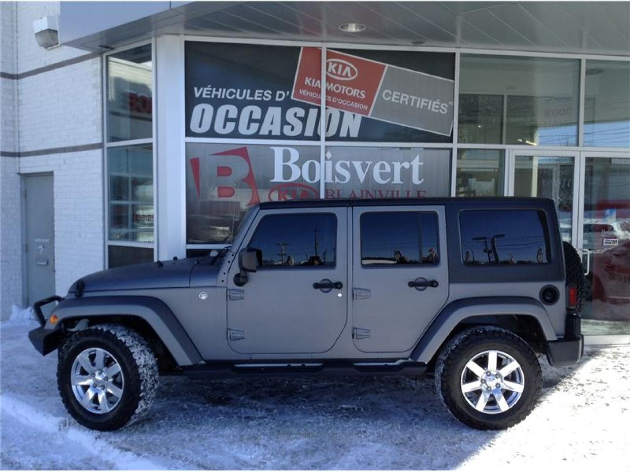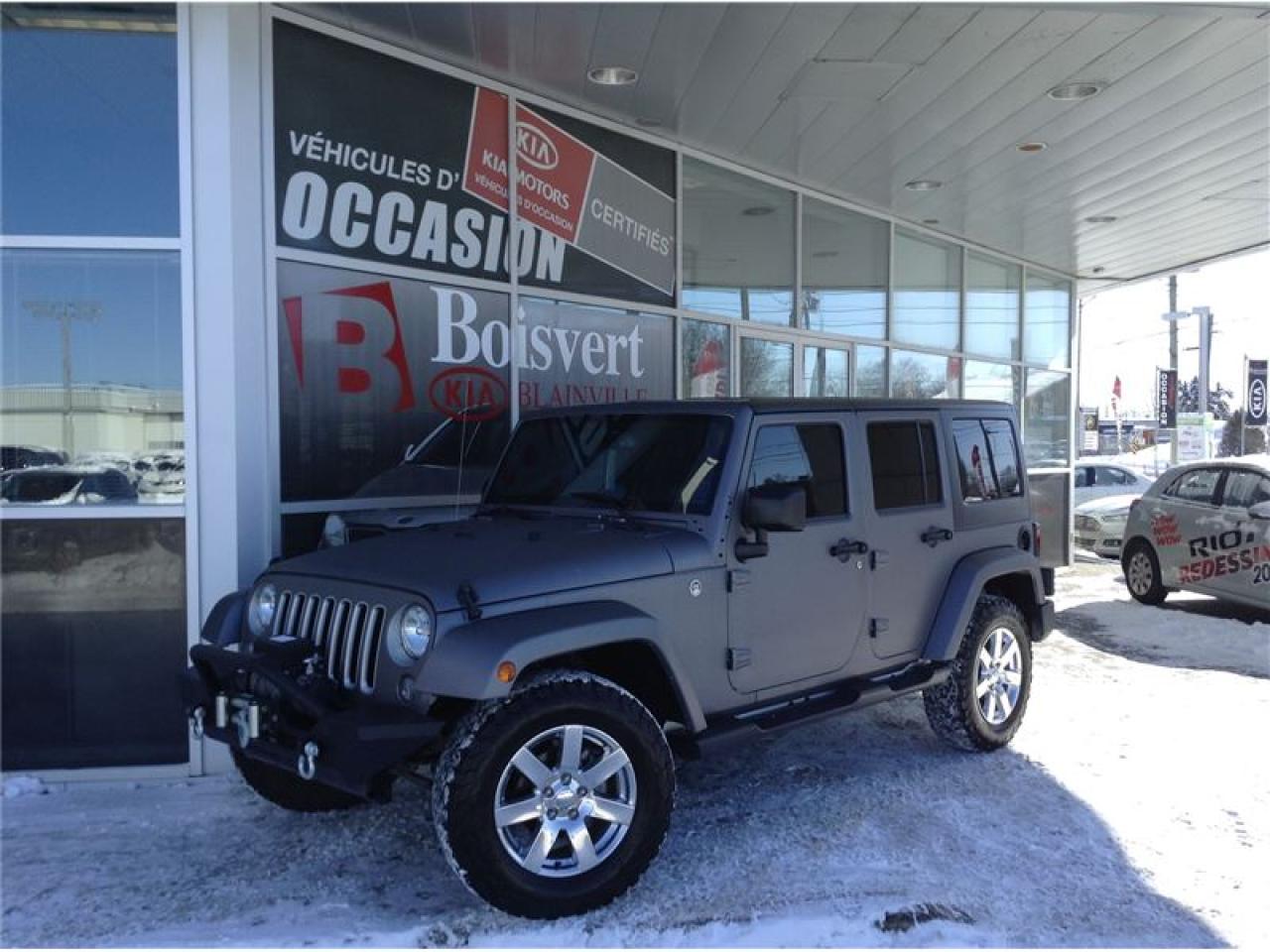 JEEP WRANGLER UNLIMITED 2016GPS / NAVIGATION GROUPE ÉLECTRIQUE WINCH SUR LE BUMPER FAITE VITE FINANCEMENT FACILE Boisvert Kia Blainville situé au 416 boul Curé Labelle, Blainville. Bien implanté dans la communauté, facile d'axes par les 2 grande autoroute, soie la 640 ou l'autoroute 15. Que vous soyer de Montréal ou bien de Laval, un trajet de 10 a 15 minutes vous sufira pour vivre une expérience d'achat unique.Boisvert Kia a reçu la prestigieuse distinction « Concessionnaire Platine « ce qui vous donne plusieurs avantage, comme la possibilité de vous procurer la voiture Soul EV complètement électrique.Sur place, tout vous semblera très facile et rapide. Une possibilité de financement à partir de 0.9% ainsi que du financement facile de 2e et 3e chance au crédit. Avec son département de voiture d'occasion et son programme Certifié Kia Canada, tout est mis à votre disposition.Un rapport d'inspection en 135 points, un rapport Carproof, liste des réparations de reconditionnement complète, ainsi qu'une remise en état : Lavage, esthétique complet. Sur place votre voiture d'échange seras évaluée au meilleur prix du marché !!!Venez vivre une expérience d'achat 5 Etoiles chez Boisvert Kia à Blainville.Boisvert Kia Blainville is located at 416 Curé Labelle Blvd, Blainville. Well implanted in the community, with an easy driving access directly from the 2 major highways 15 (exit no. 25) and the 640. If, you are located either from Montreal or Laval, a short trip of 10 or 15 minutes is being just a-way for living a unique buying experience. Boisvert Kia, winning award of the prestigious distinction of ``platinum dealership`` is offering many advantages as the possibility of getting the unique Soul EV electric car. In house, everything will seem very fast and easy for you. One possibility of financing from 0.9 % as well as the easy financing of 2nd and 3rd chance on the credit. With his department of second-hand car and its Certified Kia program, everything is provided to your disposal. A 135-point inspection report, a Carproof report including a complete list of repairs, as well as a restoration: Complete esthetic wash. On the spot, your car exchange will be evaluated at the best prices of the market!Come and live a 5 stars buying experience!