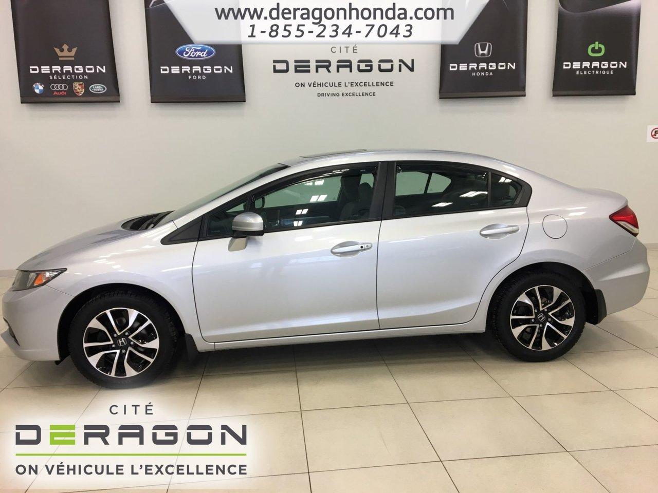 Honda Civic EX+D?MARREUR ? DISTANCE+TOIT OUVRANT+BLUETOOTH EX+BAS KILO+D?MARREUR ? DISTANCE+TOIT OUVRANT+VITRE TEINT?ES+SI?GES CHAUFFANTS+CRUISE CONTROL 2014Régulateur de vitesse, Toit ouvrant, Essuie-glaces intermittents, Anti-démarreur, Freins ABS, Contrôle de stabilité, Coussin gonflable conducteur, Coussins gonflables latéraux, Démarreur à distance, Lecteur CD, Lecteur MP3, Portes électriques, Tachymètre, Vitres électriques, Air climatisé, Commandes audio au volant, Sièges arrières rabattables, Sièges chauffants, Volant ajustable, Moonroof, Tapis protecteurs, Vitres teintées, Ordinateur de bord, Caméra de recul, Radio AM/FM, Volant gainé de cuir, Phares automatiques, Rétroviseur électrique, Direction assistée, Télédéverrouillage, Rétroviseurs chauffants, Coussins gonflables arrière pour la tête, Sièges tissu, Démarrage sans clé, Freins à disque, Sièges chauffants - Avant, Rétroviseurs électriques, Jantes en alliage, Antipatinage, Verrous de sécurité pour enfants, Sièges baquets, Prise Auxiliaire, Technologie Bluetooth intégrée, Port USB, Aluminium, Climatisation