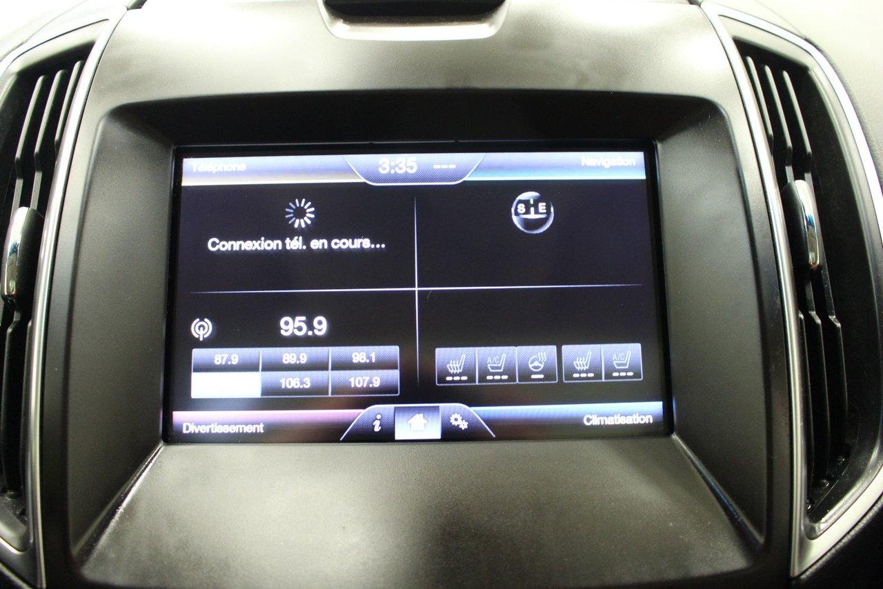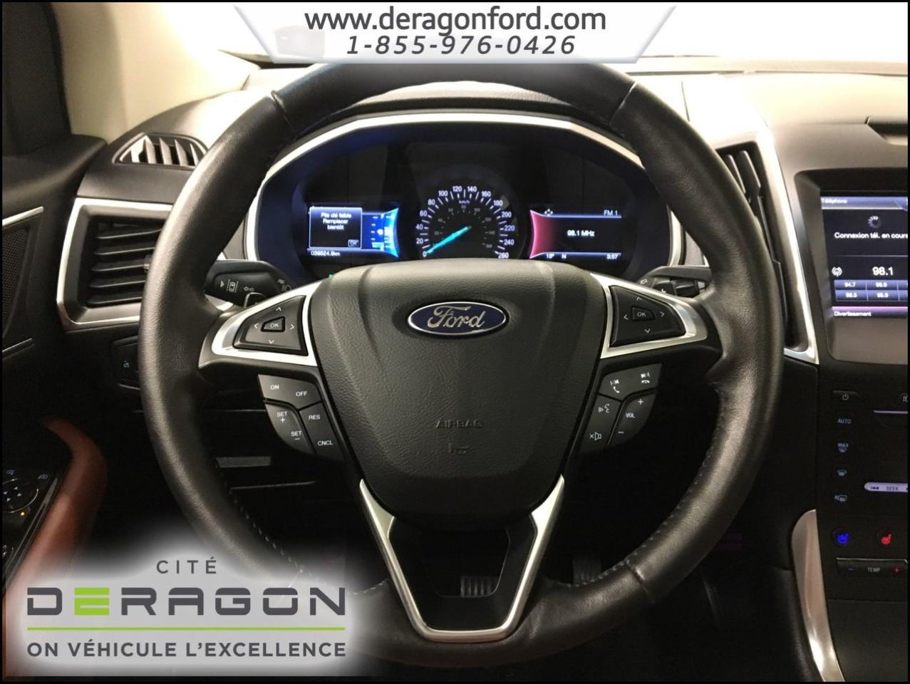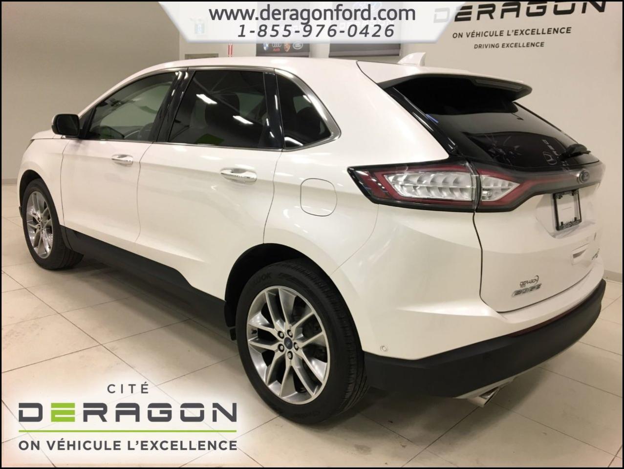 Ford Edge TITANIUM + AWD + TOIT + NAVIGATION TITANIUM + AWD + TOIT + NAVIGATION 2015Régulateur de vitesse, Toit ouvrant, Essuie-glaces intermittents, Essuie-glace arrière, Anti-démarreur, Freins ABS, Contrôle de stabilité, Coussin gonflable conducteur, Coussins gonflables latéraux, Démarreur à distance, Lecteur CD, Lecteur MP3, 8 Haut-parleurs, Portes électriques, Sièges électriques, Tachymètre, Vitres électriques, Air climatisé, Intérieur en cuir, Climatisation deux zones, Commandes audio au volant, Sièges arrières rabattables, Sièges chauffants, Siège mémoire, Volant ajustable, Aileron, Tapis protecteurs, Vitres teintées, Phares haute intensité, Ordinateur de bord, Tout équipé, Caméra de recul, Radio AM/FM, Rétroviseurs, Volant gainé de cuir, Phares automatiques, Rétroviseur électrique, Sièges arrières chauffants, Direction assistée, Télédéverrouillage, Rétroviseurs chauffants, Banquette arrière divisé, Siège à réglage électrique, Système d\'alarme, Coussins gonflables arrière pour la tête, Siège conducteur - soutien lombaire, Siège passager - soutien lombaire, Essuie-glace détecteur de pluie, Démarrage sans clé, Freins à disque, Sièges chauffants - Avant, Rétroviseurs électriques, Jantes en alliage, Antipatinage, Phares antibrouillards, Verrous de sécurité pour enfants, Système de surveillance de la pression des pneus, Sièges baquets, Technologie Bluetooth intégrée, Port USB, Climatiseur automatique, Aide au stationnement (capteurs), Rétroviseur à atténuation automatique, Aluminium, Climatisation