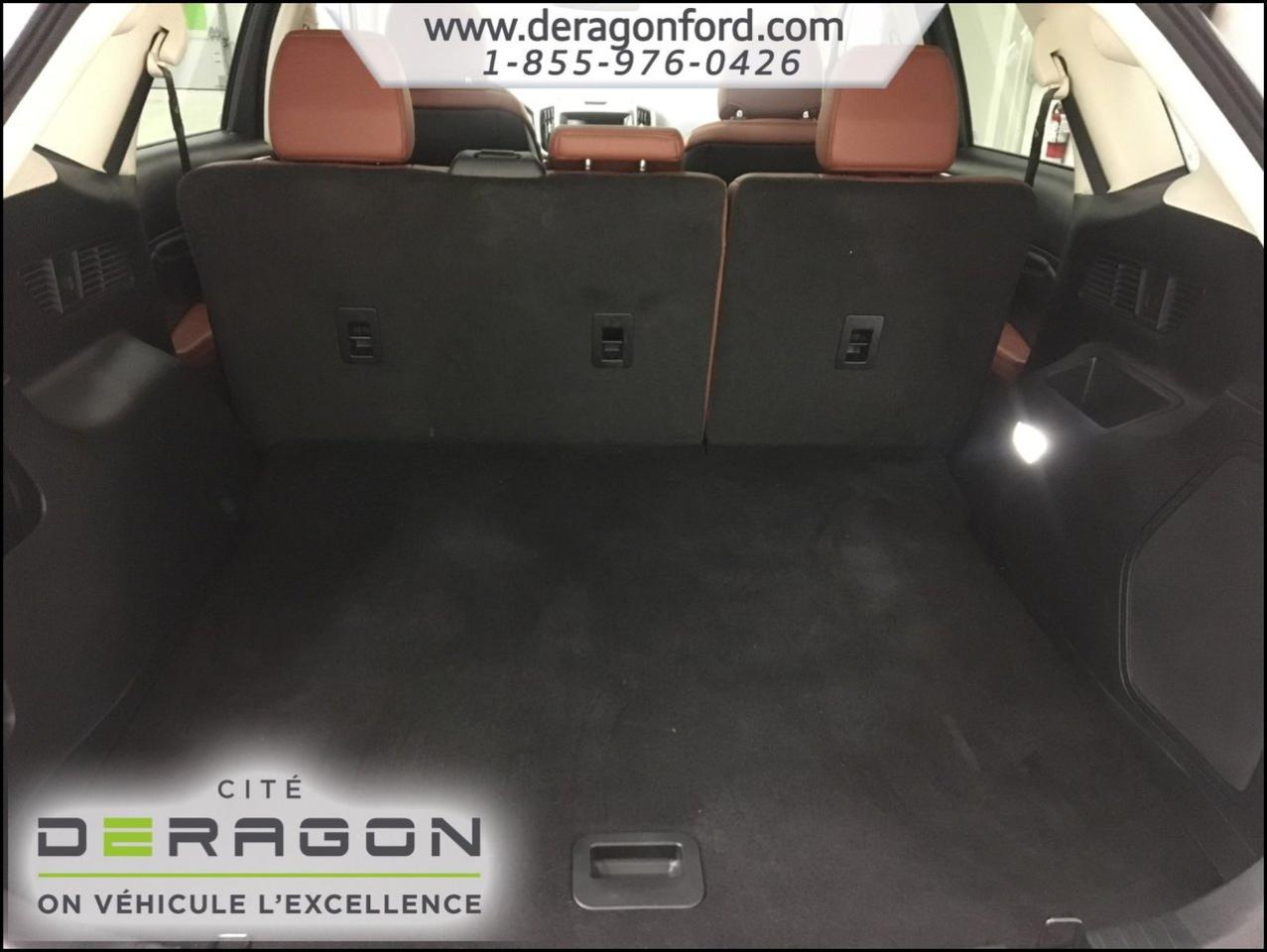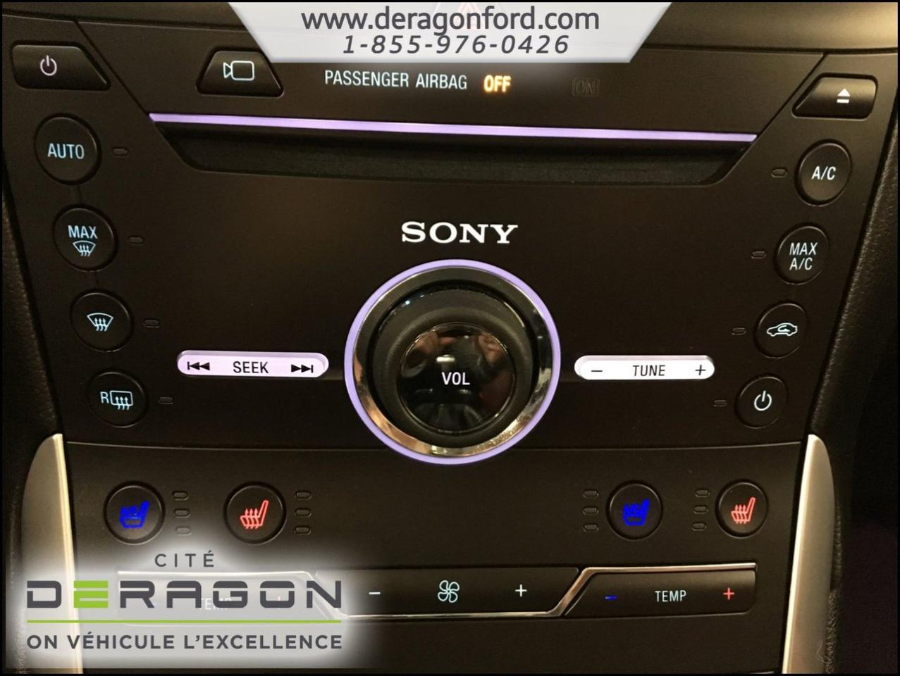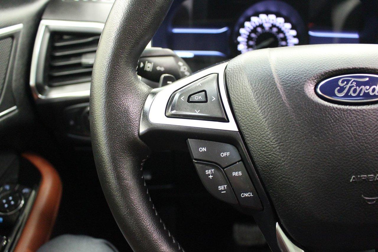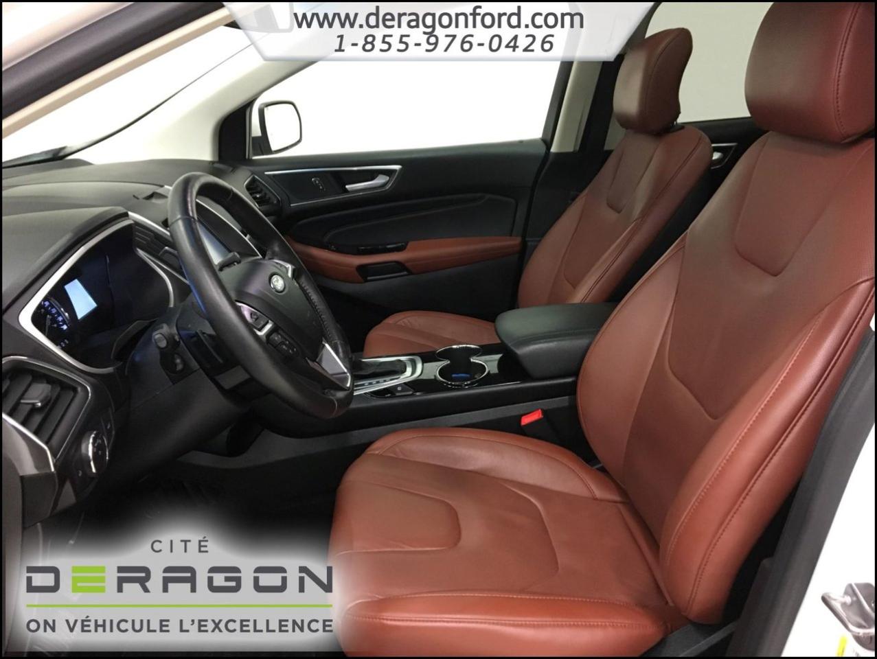 Ford Edge TITANIUM + AWD + TOIT + NAVIGATION TITANIUM + AWD + TOIT + NAVIGATION 2015Régulateur de vitesse, Toit ouvrant, Essuie-glaces intermittents, Essuie-glace arrière, Anti-démarreur, Freins ABS, Contrôle de stabilité, Coussin gonflable conducteur, Coussins gonflables latéraux, Démarreur à distance, Lecteur CD, Lecteur MP3, 8 Haut-parleurs, Portes électriques, Sièges électriques, Tachymètre, Vitres électriques, Air climatisé, Intérieur en cuir, Climatisation deux zones, Commandes audio au volant, Sièges arrières rabattables, Sièges chauffants, Siège mémoire, Volant ajustable, Aileron, Tapis protecteurs, Vitres teintées, Phares haute intensité, Ordinateur de bord, Tout équipé, Caméra de recul, Radio AM/FM, Rétroviseurs, Volant gainé de cuir, Phares automatiques, Rétroviseur électrique, Sièges arrières chauffants, Direction assistée, Télédéverrouillage, Rétroviseurs chauffants, Banquette arrière divisé, Siège à réglage électrique, Système d\'alarme, Coussins gonflables arrière pour la tête, Siège conducteur - soutien lombaire, Siège passager - soutien lombaire, Essuie-glace détecteur de pluie, Démarrage sans clé, Freins à disque, Sièges chauffants - Avant, Rétroviseurs électriques, Jantes en alliage, Antipatinage, Phares antibrouillards, Verrous de sécurité pour enfants, Système de surveillance de la pression des pneus, Sièges baquets, Technologie Bluetooth intégrée, Port USB, Climatiseur automatique, Aide au stationnement (capteurs), Rétroviseur à atténuation automatique, Aluminium, Climatisation