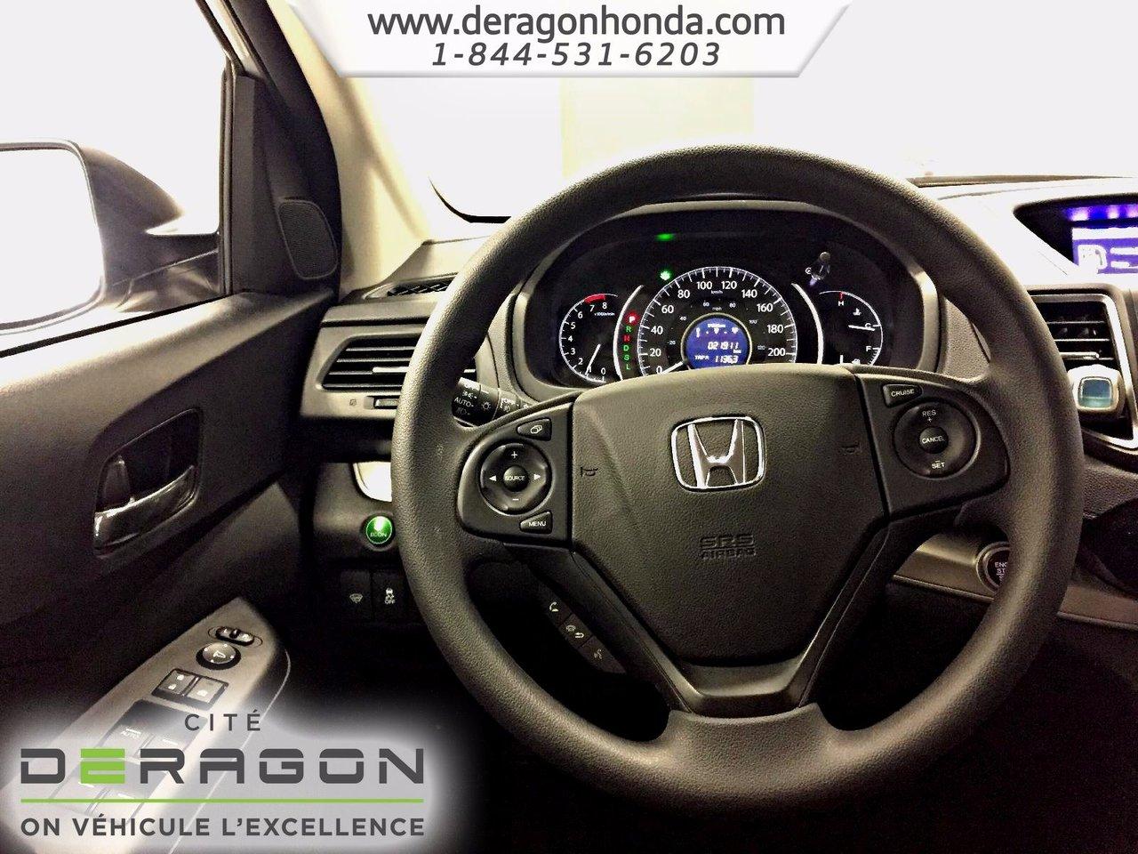 Honda CR-V SE+AWD+SI?GES CHAUFFANTS+CAM?RA DE RECUL SE+AWD+SI?GES CHAUFFANTS+CAM?RA DE RECUL 2016Régulateur de vitesse, Essuie-glace arrière, Freins ABS, Contrôle de stabilité, Coussin gonflable conducteur, Coussins gonflables latéraux, Lecteur CD, Lecteur MP3, Vitres électriques, Air climatisé, Commandes audio au volant, Sièges arrières rabattables, Sièges chauffants, Tapis protecteurs, Vitres teintées, Phares haute intensité, Tout équipé, Caméra de recul, Radio AM/FM, Direction assistée, Télédéverrouillage, Rétroviseurs chauffants, Démarrage sans clé, Rétroviseurs électriques, Jantes en alliage, Phares antibrouillards, Prise Auxiliaire, Port USB, Traction intégrale