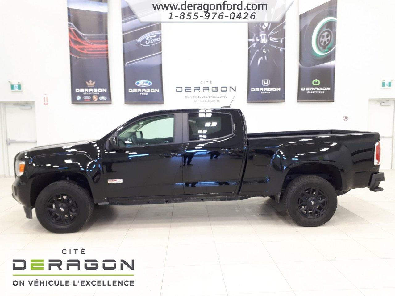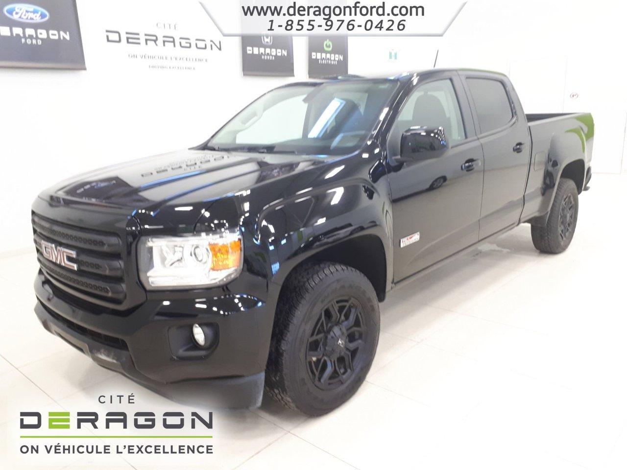 GMC Canyon SLE +ALL-TERRAIN + BLACK/BLACK + MAGS HD + CUIR SLE +ALL-TERRAIN + BLACK/BLACK + MAGS HD + CUIR 2017Régulateur de vitesse, Anti-démarreur, Freins ABS, Contrôle de stabilité, Coussin gonflable conducteur, Coussins gonflables latéraux, Démarreur à distance, Lecteur CD, Lecteur MP3, 6 Haut-parleurs, Portes électriques, Sièges électriques, Vitres électriques, Air climatisé, Intérieur en cuir, Commandes audio au volant, Lampes de lecture arrière, Sièges arrières rabattables, Sièges chauffants, Volant ajustable, Tapis protecteurs, Vitres teintées, Doublure de caisse, Attelage remorque, Ordinateur de bord, Caméra de recul, Radio AM/FM, Rétroviseurs, Volant gainé de cuir, Rétroviseur électrique, Direction assistée, Télédéverrouillage, Rétroviseurs chauffants, Banquette arrière divisé, Siège à réglage électrique, Système d\'alarme, Coussins gonflables arrière pour la tête, Freins à disque, Rétroviseurs électriques, Jantes en alliage, Antipatinage, Phares antibrouillards, Système de surveillance de la pression des pneus, Sièges baquets, Technologie Bluetooth intégrée, Port USB, Marchepied arrière, Climatiseur automatique, Roue de secours - Temporaire, Rétroviseur à atténuation automatique, Climatisation