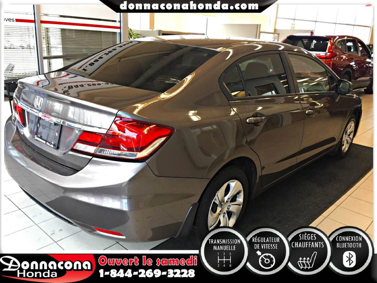 DONNACONA HONDA, HONDA CIVIC LX 2013, TRANSMISSION MANUELLE, RÉGULATEUR DE VITESSE, CONNEXION BLUETHOOT, AIR CLIMATISÉ, SIÈGES CHAUFFANTS, VITRES TEINTÉES, ENJOLIVEURS DE ROUES ET BIEN PLUS ENCORE.