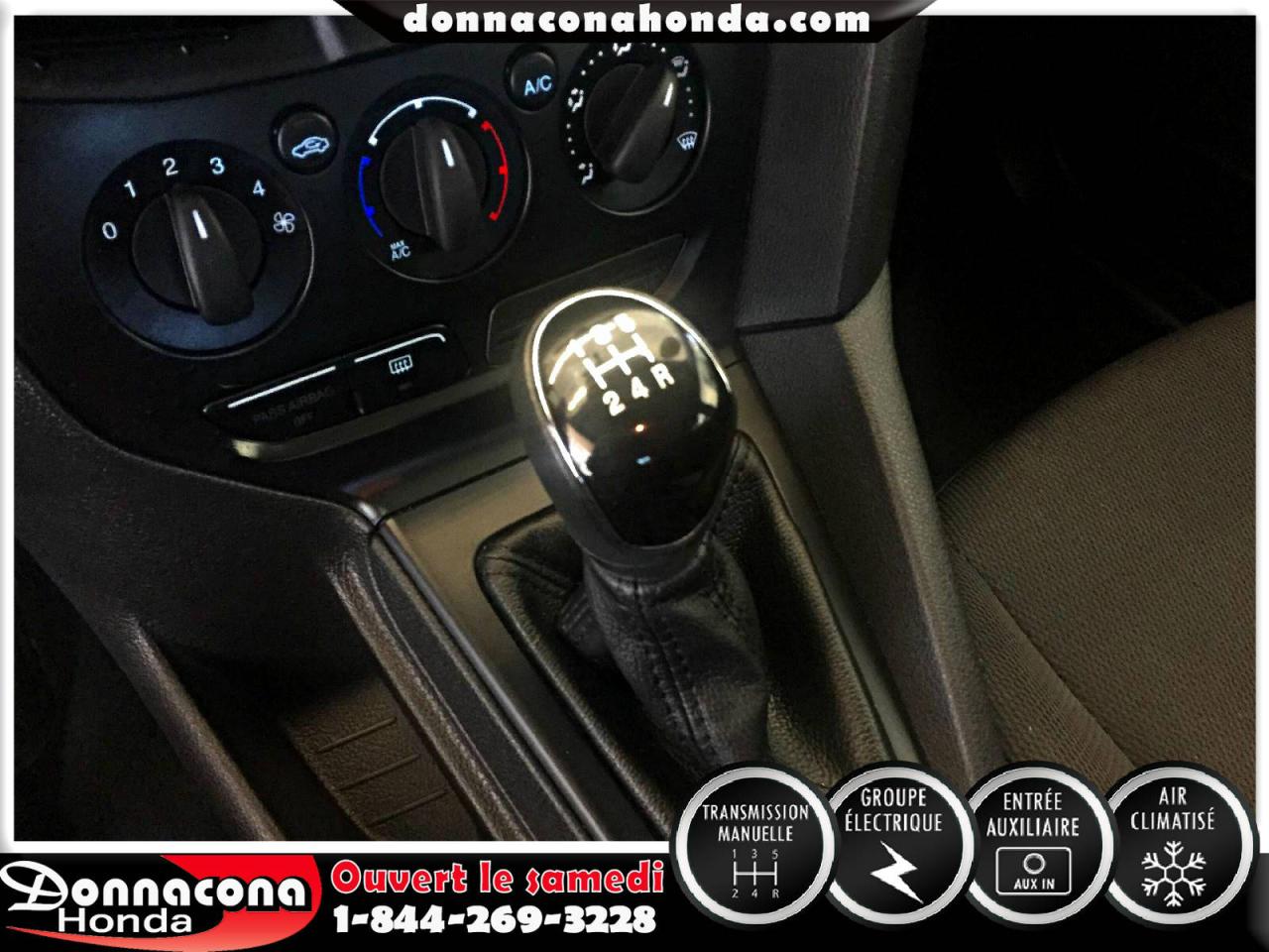 DONNACONA HONDA, FORD FOCUS S 2014, TRANSMISSION MANUELLE, GROUPE ÉLECTRIQUE, TÉLÉDÉVÉREOUILLAGE, ENJOLIVEURS DE ROUES, AIR CLIMATISÉ, VITRES TEINTÉ, LECTEUR MP3 ET BIEN PLUS ENCORE.