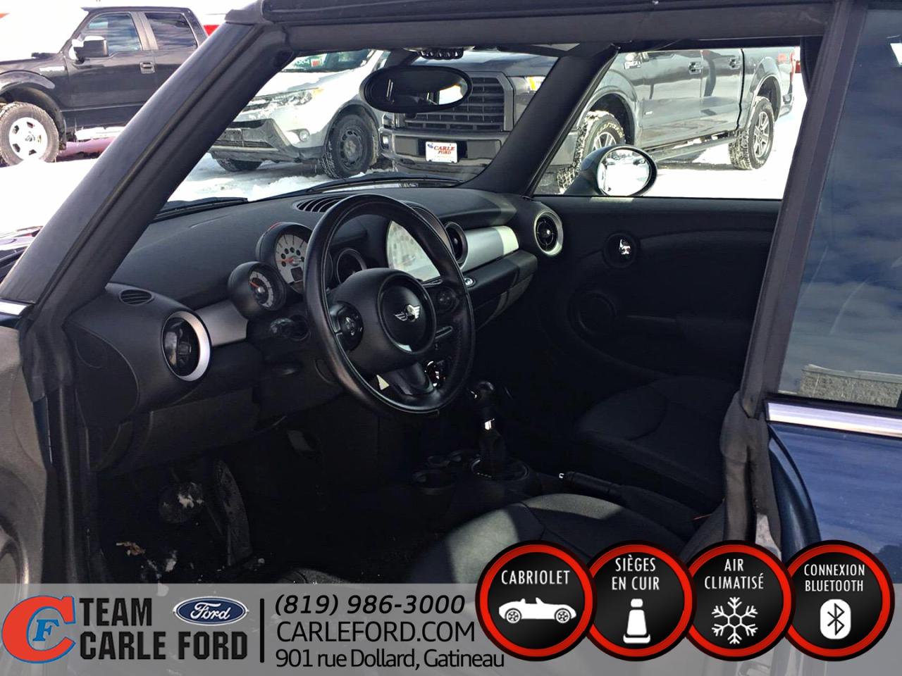 Air climatisé, vitres électriques, portes électriques, miroirs électriques, sièges chauffant, radio/cd, régulateur de vitesse, intérieur en cuir, bluetooth, convertible