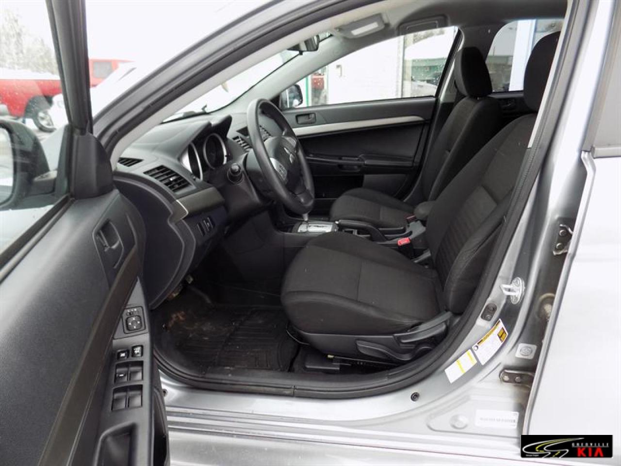 Mitsubishi Lancer SE 2012\n\nRégulateur de vitesse, Servo-direction, Essuie-glaces intermittents, Freins ABS, Contrôle de stabilité, Serrure à sécurité pour enfants, Lecteur CD, Lecteur MP3, Miroirs chauffants, Miroirs électriques, Portes électriques, Sièges électriques, Vitres électriques, Air climatisé, Commandes audio au volant, Lampes de lecture arrière, Sièges chauffants, Volant ajustable, Ordinateur de bord, Radio AM/FM, Phares automatiques, Télédéverrouillage, Système d'alarme, Coussins gonflables arrière pour la tête, Coussins gonflables latéraux pour la tête, Sièges tissu, Antivol, Antipatinage, Sièges baquets\n\n
