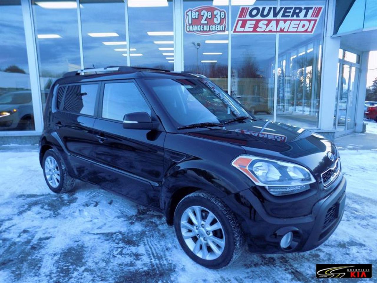 Kia Soul 5dr Wgn 2013\n\nRégulateur de vitesse, Servo-direction, Essuie-glaces intermittents, Freins ABS, Contrôle de stabilité, Serrure à sécurité pour enfants, Lecteur CD, Lecteur MP3, Miroirs chauffants, Miroirs électriques, Portes électriques, Vitres électriques, Air climatisé, Commandes audio au volant, Sièges chauffants, Volant ajustable, Vitres teintées, Radio satellite, Ordinateur de bord, Radio AM/FM, Coussins gonflables arrière pour la tête, Coussins gonflables latéraux pour la tête, Miroir vanité conducteur illuminé, Sièges tissu, Antivol, Antipatinage, Phares antibrouillards, Sièges baquets\n\n