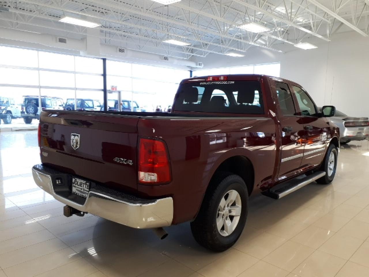 MOULURES LATÉRALES CHROMÉES, DIFFÉRENTIEL 3.92, TÉLÉPHONE MAINS LIBRES BLUETHOOT, ÉCRAN TACTILE 5 POUCES, FOND DE CAISSE, BARRURES DE «TAIL GATE» BARRURES DE ROUES, SHERLOCK. Prise de courant auxiliaire de 12 V Climatisation Bac de rangement derrière le siège (cabine simple) Régulateur de vitesse Accoudoir central pour les sièges avant avec trois porte-gobelets Banquette avant 40-20-40 en vinyle très résistant Banquette arrière relevable en vinyle très résistant (Quad Cab/cabine d'équipe) Système Media Centre : Pôle multimédia avec port USB à distance et prise d'entrée auxiliaire Verrouillage électrique des portes et glaces avant à commande monotouche à l'ouverture et à la fermeture (Quad Cab/cabine d'équipe) Rangement dans le plancher arrière (cabine d'équipe) Bacs de rangement sous la banquette arrière (Quad Cab et cabine d'équipe) Colonne de direction inclinable CARACTÉRISTIQUES EXTÉRIEURES Roues de 17 po en aluminium Pare-chocs avant/arrière chromés Calandre chromée avec garniture hexagonale noire Rétroviseurs extérieurs de 152 x 229 mm (6 x 9 po) noirs à commande électrique, chauffants et repliables manuellement (cabine Quad/d'équipe) Éclairage de l'espace utilitaire Bouclier supérieur moulé noir Phares halogènes à quatre lentilles SÉCURITÉ Six sacs gonflables comprenant les sacs gonflables multimodes du conducteur et du passager avant, les rideaux gonflables latéraux et les sacs gonflables latéraux montés dans les sièges avant Phares automatiques Système électronique d'anti dérapage (ESC)7 avec assistance au départ en pente, dispositif anti louvoiement de la remorque, dispositif électronique antiroulis, assèchement automatique des freins, freinage d'urgence anticipé et anti patinage Freins antiblocage à disque aux quatre roues avec assistance au freinage Pneu de secours pleine grandeur Hayon verrouillable Dispositif antivol Sentry KeyMD Surveillance de la pression des pneus avec affichage Faisceau électrique de remorque à 4 et à 7 broches Batterie sans entretien de 730 A Boîte de transfert à prise temporaire à commande électronique et passage à la volée (4x4) Chauffe-bloc Barre antiroulis avant Suspension avant avec bras supérieurs et inférieurs, ressorts hélicoïdaux et amortisseurs renforcés COMPÉTENCES ET FONCTIONNALITÉS suite Suspension arrière à ressorts hélicoïdaux multibras avec amortisseurs renforcés Direction à crémaillère électrique Recouvrement du plancher en moquette Banquette avant 40-20-40 en tissu Tapis protecteurs Radio satellite SiriusXM avec abonnement d'un an GARANTIE 5 ANS/ 100 000KM. INFO TEXTO: 450-760-8834 Le monde vient de partout pour profiter de nos prix! Grâce à un important réseau bâti en plus de 30 années de service, nous allouons également des montants exceptionnels sur TOUTES les échanges, de toutes les marques! Nous reprenons même en échange les bateaux, motos, motoneiges, etc. Tout cela accompagné de notre service exceptionnel comme le démontre nos centaines d'avis Google/Facebook/Reviewsii. Joliette Dodge Nous sommes une concession familiale qui marche au VOLUME! C'est pourquoi nous offrons d'excellents prix! C'est aussi grâce à un service exceptionnel que nous comptons plus de 30 ans d'affaires avec le même président. Notre entreprise familiale sait être à l'écoute de ses clients et veut s'assurer de garder ses clients satisfait à long terme. Nous sommes l'une des rares concessions recommandé CAA Québec, ce qui signifie un taux de satisfaction de la clientèle de plus de 95% pour le service après-vente! Encore une fois, c'est pourquoi plus de 250 avis ont été laissé avec une moyenne de 4.5 étoiles sur 5 à travers Google, Facebook et Reviewsii. Nous sommes à seulement 25 minutes de l'est de Montréal et de Terrebonne au coin de la route 158 et autoroute 31. Nous offrons un service de livraison rapide à la grandeur de la province par remorque fermée. De plus, la pré-approbation de crédit est disponible. Faite une demande internet ou appelez nous et voyez pourquoi chez Joliette Dodge, Ça vaut le détour! INFO TEXTO: 450-760-8834 PS. Plusieurs promotions Chrysler Dodge Jeep et Ram pour: employés de Bell Canada, Firestone, Cascades et plusieurs autres compagnies Appelez-nous pour savoir si vous êtes éligibles à un programme spéciale! -- We also speak English! We are at 25 min of Montreal. We're a family owned business for more than 30 years. We have one of the highest ratings of customer satisfaction in Quebec. See it by yourself: Text us 7 days a week at 450-760-8834. Rapid response guaranteed! Joliette Dodge, It's worth the detour!