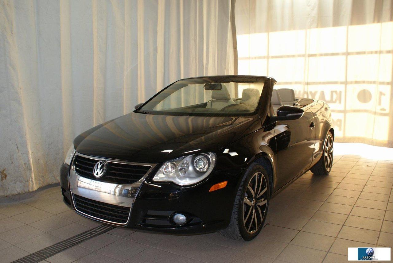 Volkswagen EOS A/C + TOIT OUVRANT + CUIR BEIGE Comfortline LE BONHEUR ? BAS PRIX! 2010Régulateur de vitesse, Toit ouvrant, Essuie-glaces intermittents, Anti-démarreur, Freins ABS, Contrôle de stabilité, Coussin gonflable conducteur, Lecteur CD, Lecteur MP3, Coffre - Ouverture à distance, Miroirs chauffants, Portes électriques, Vitres électriques, Air climatisé, Intérieur en cuir, Volant ajustable, Tapis protecteurs, Radio AM/FM, Direction assistée, Télédéverrouillage, Système d\'alarme, Rétroviseurs électriques, Jantes en alliage, Antipatinage, Phares antibrouillards, Coussins gonflables, Dégivreur de lunette arrière, Sièges baquets, Aide au stationnement (capteurs)