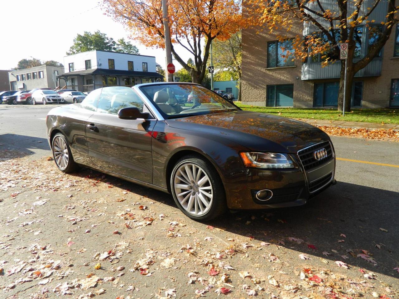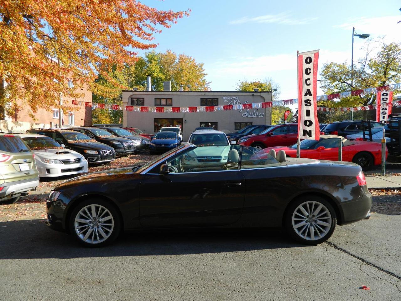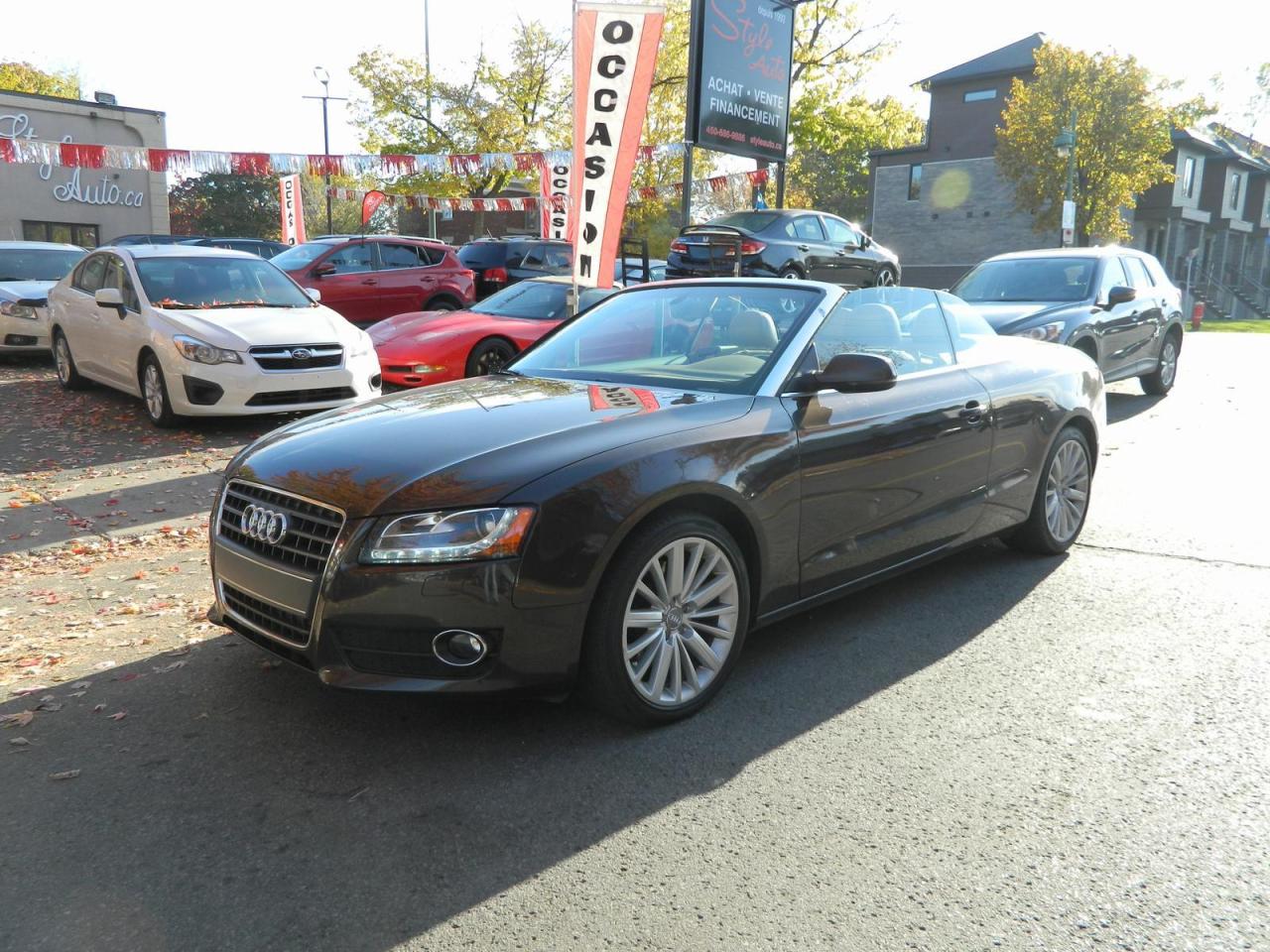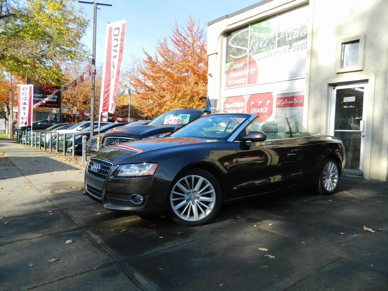 2011 AUDI A5 QUATTRO CONVERTIBLE 2.0litres TURBO tout équipé INTERIEUR EN CUIR technologie BLUETOOTH commandes AUDIO au volant SIEGES CHAUFFANTS groupe électric complet vitres portes mirroirs et régulateur de vitesse air climatisé MAGS 18 POUCES 187000km certifié CARPROOF a l'appui...STYLE AUTO EST A VOTRE SERVICE depuis 1992 tous nos véhicules viennes avec un rapport d'inspection et une garantie FINANCEMENT MAISON et BANCAIRE débute a 4.99% d'intérets pour plus d'infos contacter nous 450-686-9886