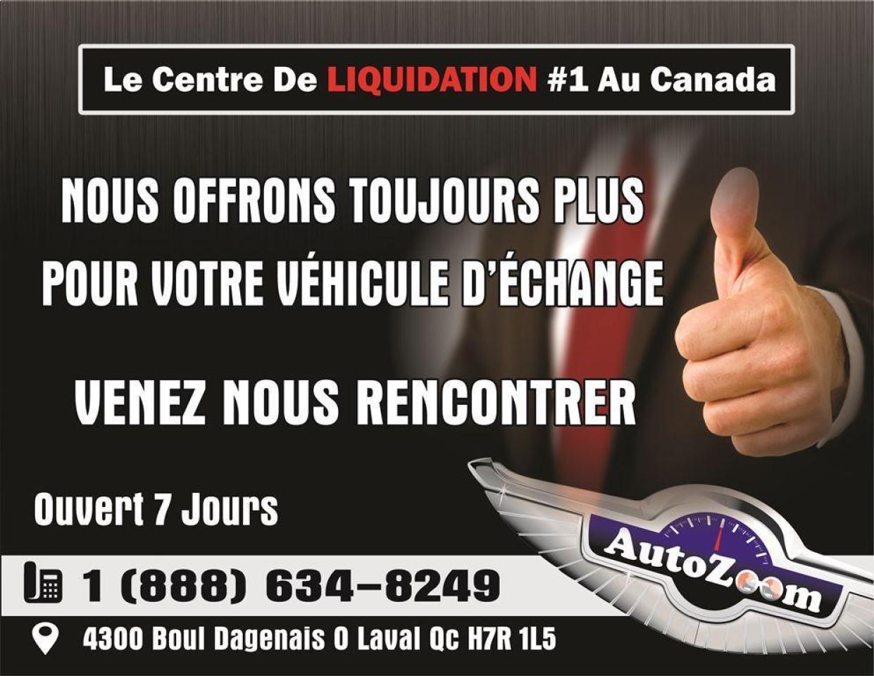 VÉHICULE CERTIFIÉ, RAPPORT D'INSPECTION, CARPROOF INCLUS, OUVERT 7 JOURS. AUTOZOOM POUR LE PRIX LA QUALITÉ ET LE SERVICE. -Contactez nous en tout temps par messagerie texte au (438) 504-9666. -# Stock : A4123 -Prix Régulier : 10,885$ I Promotion : 9,435$ -Financement prêt ouvert : 32,77$ par semaine. -Le paiement proposé est pour une durée de 72 mois, versement comptant initial de 2 000$ ou valeur d'échange équivalent nécessaire (0$ comptant disponible), frais de crédit total de 1 639,83$, taxes en sus (sujet à l'approbation de votre crédit, certaines conditions s'appliquent). - Financement simple et rapide au meilleur taux sur le marché. Aucun cas refusé 1ere, 2ieme, 3ieme chance, 0$ comptant disponible. Approbation rapide ---> http://www.autozoom.ca/fr-CA/demande-de-credit-usage.aspx - Obtenez le maximum pour votre échange - Garantie prolongé disponible - Ouvert 7 jours www.AutoZoom.ca 4300 Boul. Dagenais, Laval Qc H7R1L5 450-314-9666 Sans frais :1-888-634-8249
