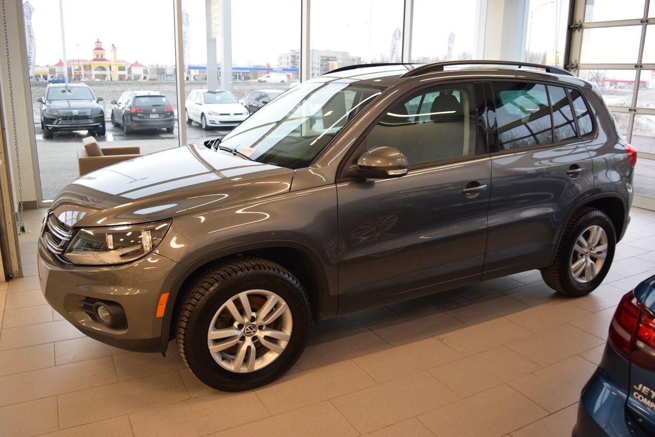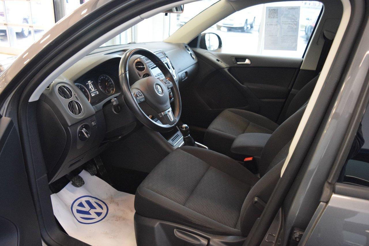 Volkswagen Tiguan Trendline Ens Commodit? 2014Régulateur de vitesse, Essuie-glaces intermittents, Essuie-glace arrière, Anti-démarreur, Freins ABS, Contrôle de stabilité, Coussin gonflable conducteur, Coussins gonflables latéraux, Lecteur CD, Chargeur de CD, Lecteur MP3, 6 Haut-parleurs, Portes électriques, Tachymètre, Vitres électriques, Air climatisé, Commandes audio au volant, Sièges chauffants, Volant ajustable, Tapis protecteurs, Vitres teintées, Ordinateur de bord, Rétroviseur électrique, Direction assistée, Télédéverrouillage, Rétroviseurs chauffants, Banquette arrière divisé, Système d\'alarme, Coussins gonflables arrière pour la tête, Sièges tissu, Siège conducteur - soutien lombaire, Siège passager - soutien lombaire, Freins à disque, Rétroviseurs électriques, Jantes en alliage, Antipatinage, Phares antibrouillards, Verrous de sécurité pour enfants, Système de surveillance de la pression des pneus, Sièges baquets, Prise Auxiliaire, Cache bagages, Aluminium, Climatisation