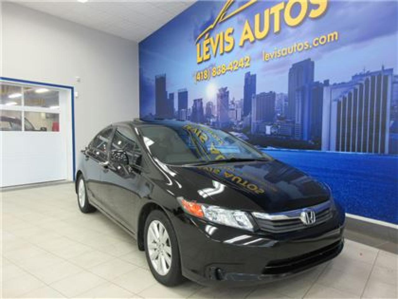 HONDA CIVIC 2012 EX-L NOIR CUIR NAVIGATION TOIT OUVRANT AVEC 118200 KM CERTIFIÉ (RAPPORT CARPROOF DISPONIBLE) MOTEUR 1.8 LITRES OFFRANT UNE EXCELLENTE PUISSANCE EN PLUS D'ÊTRE LE PLUS ÉCONOMIQUE DE SA CATÉGORIE.TRANSMISSION AUTOMATIQUE.ROUES SUR PNEUS HIVER EN EXCELLENTE CONDITION,TOIT OUVRANT ÉLECTRIQUE,SIÈGES ET MIROIRS CHAUFFANTS,VITRES TEINTÉES,BLUETHOOTH,ORDINATEUR DE ROUTE,SYSTÈME DE NAVIGATION,AIR-CLIMATISÉ,CRUISE CONTROL,LECTEUR CD MP3 AVEC PRISE AUXILIAIRE/USB/SIRIUS,VOLANT AJUSTABLE ET TÉLESCOPIQUE,GROUPE ÉLECTRIQUE COMPLET,RPM,FREIN ABS,TÉLÉVERROUILLAGE,ALARME,ANTI-PATINAGE.GARANTIE DE 3 MOIS OU 5000 KM MOTOPROPULSEUR (GARANTIE PROLONGÉ DISPONIBLE A PRIX IMBATTABLE AVEC LE CAA ET PPP) TAUX DE FINANCEMENT A PARTIR DE SEULEMENT 4.69 %.VÉHICULE EXTRÊMEMENT PROPRE AYANT UN TRES BEAU LOOK A VOIR ABSOLUMENT!Pour plus info cell:418-554-7565/418-838-4242. NOUS SOMMES SITUÉ AU 4585 BOULEVARD GUILLAUME-COUTURE LÉVIS G6W-6M6.LE PLUS GRAND CHOIX DE VÉHICULE USAGE A LEVIS.AU PLAISIR DE VOUS SERVIR.WWW.LEVISAUTOS.COM .
