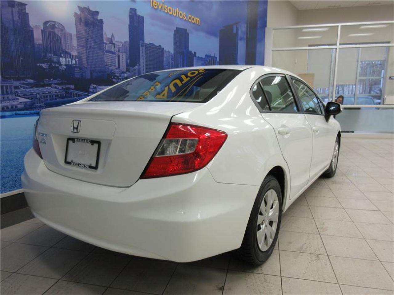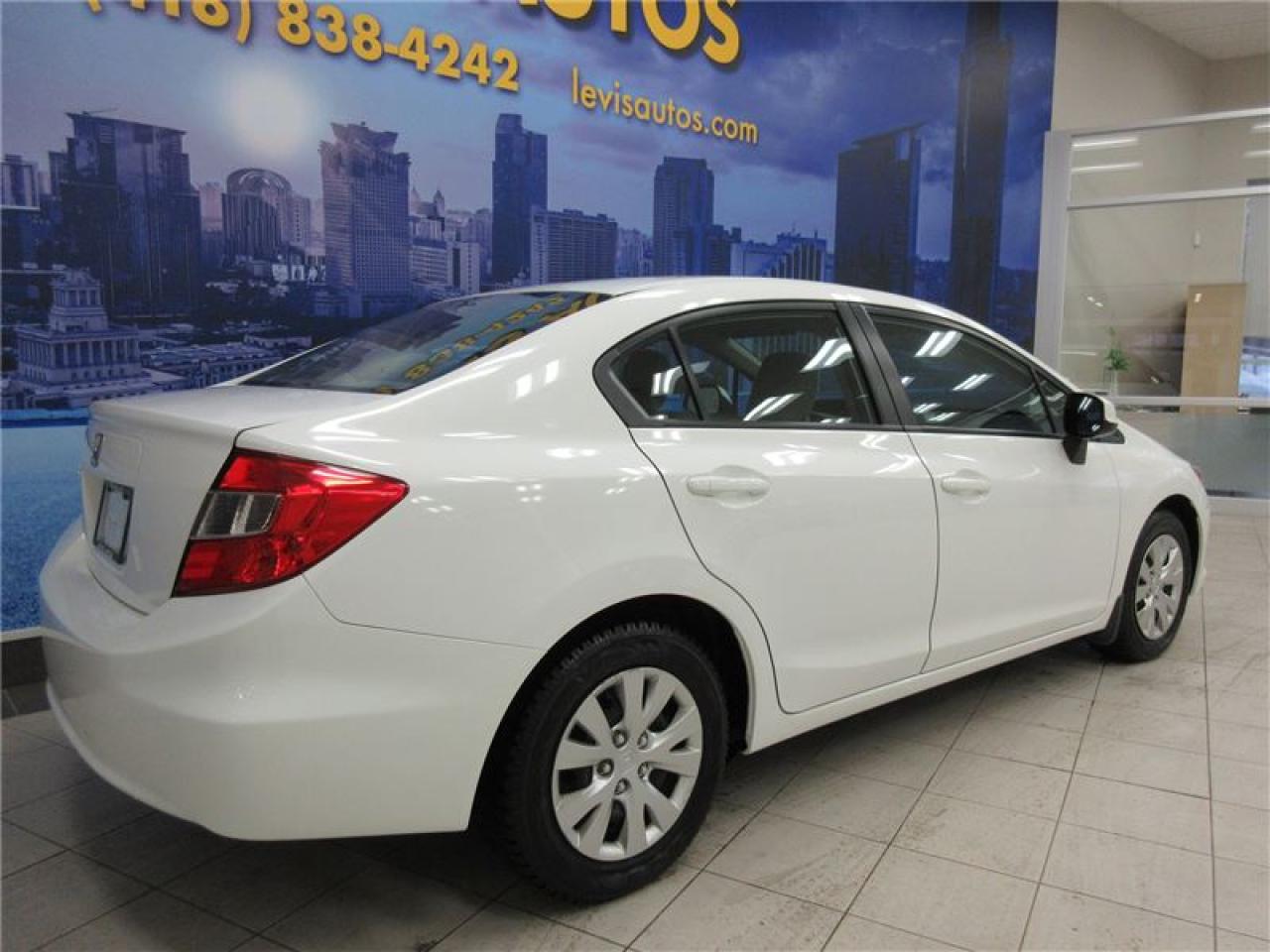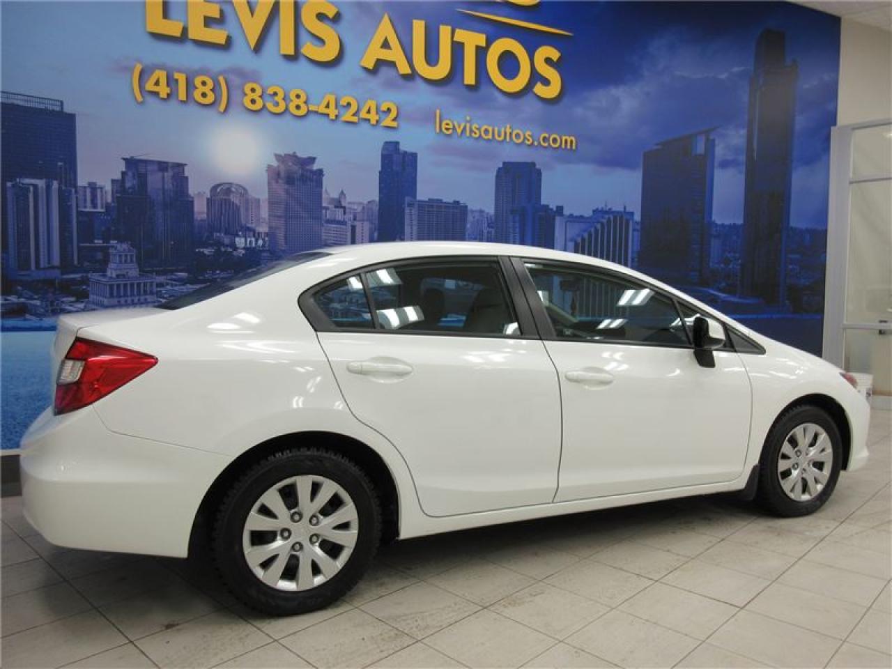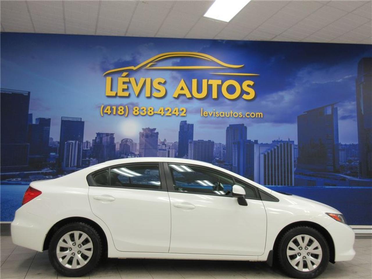 HONDA CIVIC 2012 LX AUTOMATIQUE BLANC AVEC SEULEMENT 73000 KM CERTIFIÉ (RAPPORT CARPROOF DISPONIBLE) MOTEUR 1.8 LITRES OFFRANT UNE EXCELLENTE PUISSANCE EN PLUS D'ÊTRE LE PLUS ÉCONOMIQUE DE SA CATÉGORIE. TRANSMISSION 5 VITESSES MANUELLE, ROUE D'ACIER SUR PNEUS D'HIVER TOYO EN EXCELLENTE CONDITION, MIROIRS CHAUFFANTS, BLUETOOTH, ORDINATEUR DE ROUTE, AIR-CLIMATISÉ, CRUISE CONTROL, LECTEUR CD MP3 AVEC PRISE AUXILIAIRE/USB/SIRIUS, VOLANT AJUSTABLE ET TÉLESCOPIQUE, GROUPE ÉLECTRIQUE COMPLET, RPM, FREIN ABS, TÉLÉ-VERROUILLAGE, ALARME, ANTI-PATINAGE. GARANTIE DE 3 MOIS OU 5000 KM MOTOPROPULSEUR (GARANTIE PROLONGÉ DISPONIBLE À PRIX IMBATTABLE AVEC LE CAA ET PPP) TAUX DE FINANCEMENT À PARTIR DE SEULEMENT 4.69%. VÉHICULE EXTRÊMEMENT PROPRE ET BIEN ENTRETENUE À VOIR ABSOLUMENT! POUR PLUS D'INFOS CELL:418-554-7565/418-838-4242. NOUS SOMMES SITUÉ AU 4585 BOULEVARD GUILLAUME-COUTURE LÉVIS G6W-6M6.LE PLUS GRAND CHOIX DE VÉHICULES USAGÉS À LÉVIS. AU PLAISIR DE VOUS SERVIR! VISITEZ NOTRE SITE INTERNET WWW.LEVISAUTOS.COM