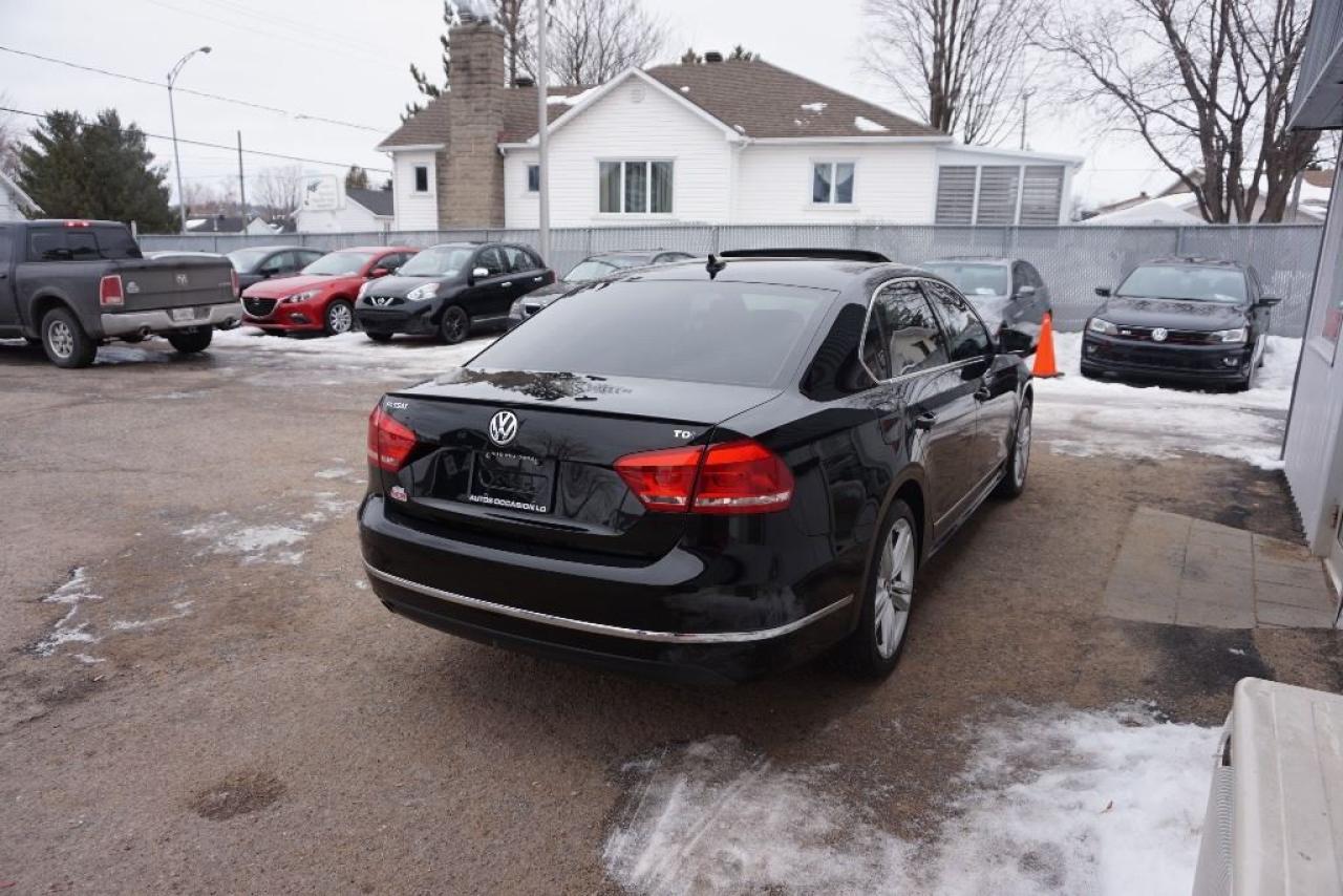 VOLKSWAGEN PASSAT TDI 2013 Édition COMFORTLINE TDI TURBO DIESEL 2.0 LITRES ** LE GROS MODÈLE : CUIR TOIT OUVRANT MAGS BLUETOOTH -- TRANSMISSION AUTOMATIQUE 6 RAPPORTS Avec Shift-Tronic au Volant -- AVEC SEULEMENT 90 000 KM CERTIFIÉ VOLKSWAGEN / 1 SEUL PROPRIÉTAIRE : ENTRETENUE DIRECTEMENT CHEZ VOLKSWAGEN / BALANCE GARANTIE VOLKSWAGEN + PROLONGATION GARANTIE TDI / 4 CYLINDRES 2.0 Litres TURBO DIESEL TRÈS ÉCONOMIQUE, DURABLE ET TRÈS LUXUEUX (RAPPORT CARPROOF DISPONIBLE) COULEUR EXTÉRIEUR NOIR, INTÉRIEUR EN CUIR NOIR /SIÈGES CHAUFFANTS,ÉLECTRIQUES -- INSPECTION COMPLÈTE INCLUSE -- ÉCHANGE ACCEPTÉ -- FINANCEMENT SUR PLACE À PARTIR 4.99 % -- BALANCE GARANTIE VOLKS : 5 ANS OU 100 000 KM TERMINENT LE 25 FÉVRIER 2018 -- PROLONGATION GARANTIE TDI : TERMINENT LE 25 FÉVRIER 2023 OU 193 000 Km -- POSSIBILITÉ DE GARANTIE PROLONGÉE À PRIX IMBATTABLE. ÉQUIPEMENT COMPLET TDI COMFORTLINE : AIR CLIMATISÉ BI-ZONES - RÉGULATEUR VITESSES - TOIT OUVRANT ÉLECTRIQUE - PHARE ANTI-BROUILLARD - JANTES 18 POUCES / PNEUS D'ÉTÉ BON - ORDINATEUR DE BORD - LECTEUR CD-Mp3 - CONTRÔLE AUDIO VOLANT - BLUETOOTH/TÉLÉPHONE MAIN LIBRE - VITRES TEINTÉES - VALISE ÉLECTRIQUE - VOLANT AJUSTABLE === POUR PLUS DE RENSEIGNEMENTS DEMANDEZ (DAVID.LAMONTAGNE) 418-903-5882 // 418-931-4036 Cell === FINANCEMENT FACILE SUR PLACE 4.99 % NOUS SOMMES OUVERTS 6 JOURS : 2430 BOUL GUILLAUME-COUTURE, LÉVIS G6W-2R5 : AU PLAISIR DE VOUS SERVIR WWW.AUTOSOCCASIONS.CA