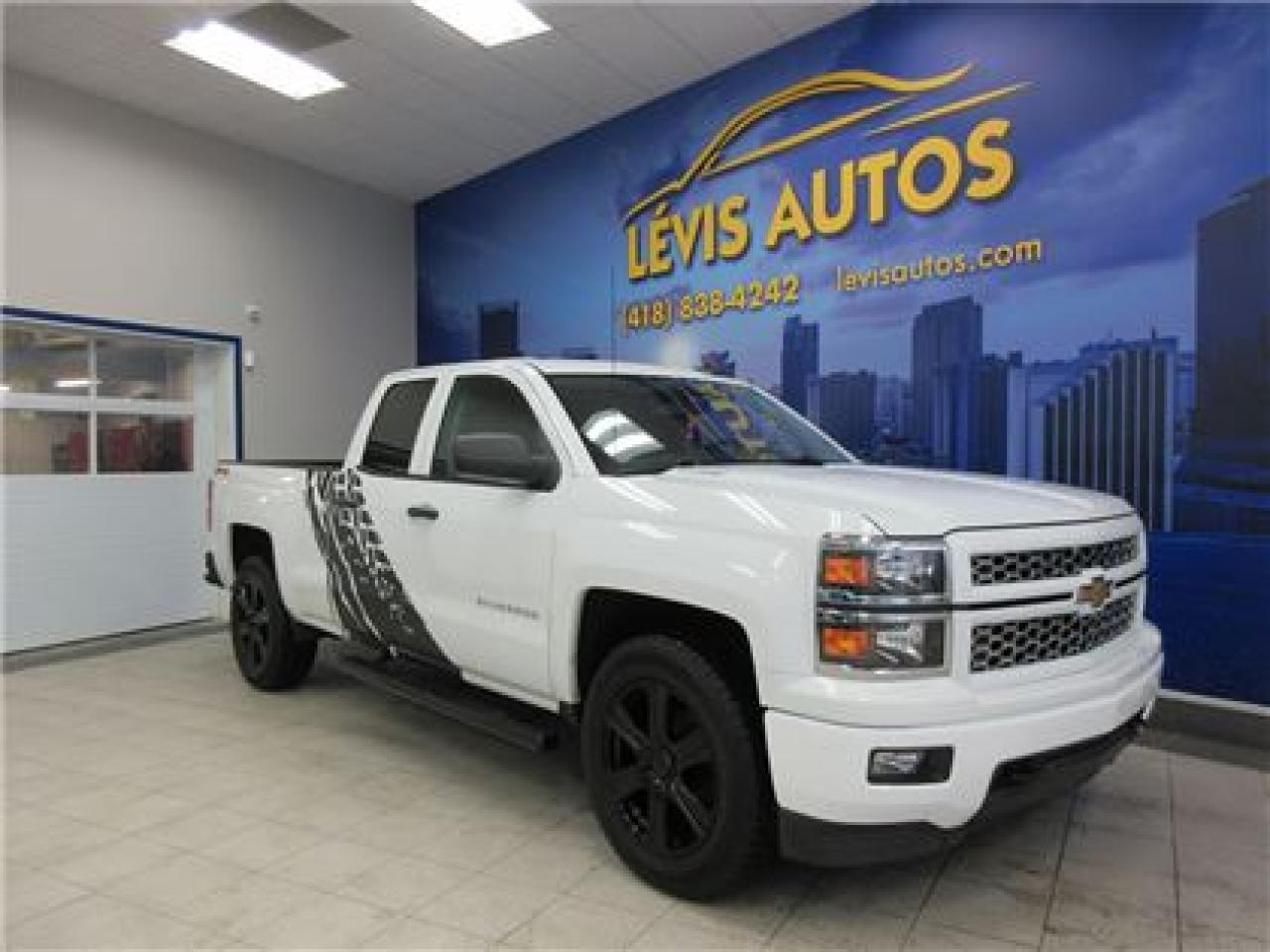 CHEVROLET SILVERADO 1500 2014 DOUBLE-CAB 4X4 V-8 5.3 LITRES VORTEC BOITE 6 1/2 AVEC SEULEMENT 78500 KM CERTIFIÉ (RAPPORT CARPROOF DISPONIBLE) MOTEUR V-8 5.3 LITRES VORTEC OFFRANT UNE EXCELLENTE PUISSANCE EN PLUS D'ÊTRE LE PLUS ÉCONOMIQUE DE SA CATÉGORIE.TRANSMISSION AUTOMATIQUE A 6 VITESSE.MAGS 20 POUCES SUR PNEUS D'HIVER EXCELLENTE CONDITION,INTÉRIEUR EN TISSU+ ÉLECTRIQUE,ATTACHE REMORQUE+CONTRÔLE DE FREIN ÉLECTRIQUE,FOND DE BOITE EN PLASTIQUE,MARCHE-PIEDS,BLUETHOOTH,PHARES ANTI-BROUILLARD,AIR-CLIMATISÉ,CRUISE CONTROL,ÉCRAN TACTILE COMPATIBLE AVEC TÉLÉPHONE INTELLIGENT + LECTEUR CD MP3 AVEC PRISE AUXILIAIRE,USB,SIRIUS,VOLANT AJUSTABLE,GROUPE ÉLECTRIQUE COMPLET,RPM.GARANTIE 1 AN OU 15000 KM MOTOPROPULSEUR (GARANTIE PROLONGÉ DISPONIBLE A PRIX IMBATTABLE AVEC LE CAA ET PPP) TAUX DE FINANCEMENT A PARTIR DE SEULEMENT 4.69 %.VÉHICULE EXTRÊMEMENT PROPRE EN PLUS D'AVOIR UN TRÈS BEAU LOOK A VOIR ABSOLUMENT!VÉHICULE ACCIDENTÉ ET RÉPARÉ EN 2017.Pour plus info cell:418-554-7565/418-838-4242. NOUS SOMMES SITUÉ AU 4585 BOULEVARD GUILLAUME-COUTURE LÉVIS G6W-6M6.LE PLUS GRAND CHOIX DE VEHICULE USAGE A LEVIS.AU PLAISIR DE VOUS SERVIR.WWW.LEVISAUTOS.COM