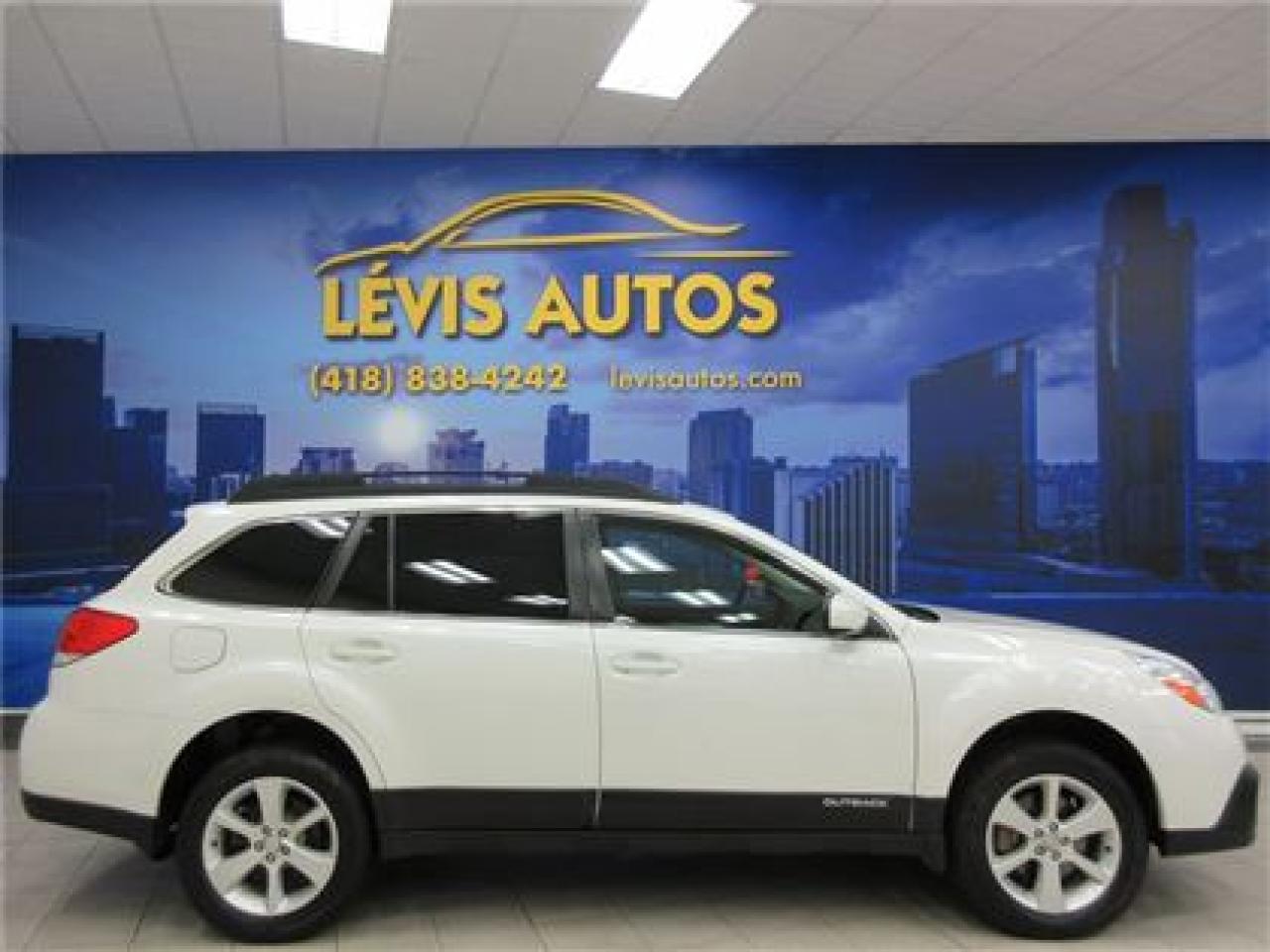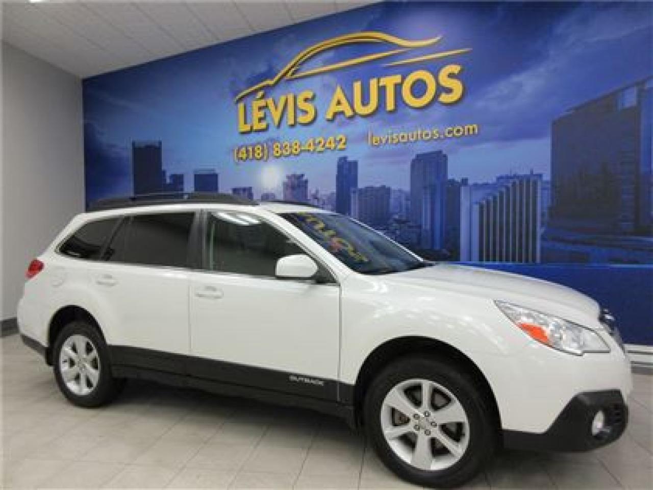 SUBARU OUTBACK 2014 3.6R ?DITION AWD BLANC PERLE AVEC 119800 KM CERTIFIÉ ET N'AYANT JAMAIS ?T? ACCIDENT? ( UNIQUE PROPRI?TAIRE,RAPPORT CARPROOF DISPONIBLE ) MOTEUR 3.6 LITRES OFFRANT PUISSANCE ET DOUCEUR DE ROULEMENT.TRANSMISSION AUTOMATIQUE AVEC LE MODE SHIFTRONIC.MAGS SUR PNEUS ?T? EN EXCELLENTE CONDITION,TOIT OUVRANT ?LECTRIQUE,INT?RIEUR EN TISSU NOIR CHAUFFANT ET ?LECTRIQUE,BLUETHOOTH,COMMANDE AU VOLANT,ORDINATEUR DE ROUTE,AIR-CLIMATIS?,CRUISE CONTROL,LECTEUR CD MP3 AVEC PRISE AUXILIAIRE/SIRIUS ET USB,VOLANT AJUSTABLE ET T?LESCOPIQUE,GROUPE ?LECTRIQUE COMPLET,RPM,FREIN ABS,T?L?VEROUILLAGE,ALARME,ANTI-PATINAGE.GARANTIE DE 6 MOIS OU 6000 KM MOTOPROPULSEUR ( GARANTIE PROLONG? DISPONIBLE A PRIX IMBATTABLE AVEC LE CAA ET PPP ) TAUX DE FINANCEMENT A PARTIR DE SEULEMENT 4.69 %.V?HICULE EXTREMEMENT PROPRE A VOIR ABSOLUMENT.!Pour plus info cell:418-554-7565/418-838-4242 ( Stephane Rancourt ) en tout temps.NOUS SOMMES SITU? AU 4585 BOULEVARD GUILLAUME-COUTURE L?VIS G6W-6M6.LE PLUS GRAND CHOIX DE VEHICULE USAGE A LEVIS.AU PLAISIR DE VOUS SERVIR.WWW.LEVISAUTOS.COM