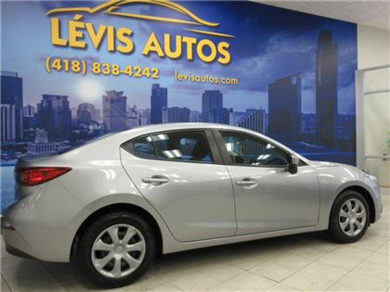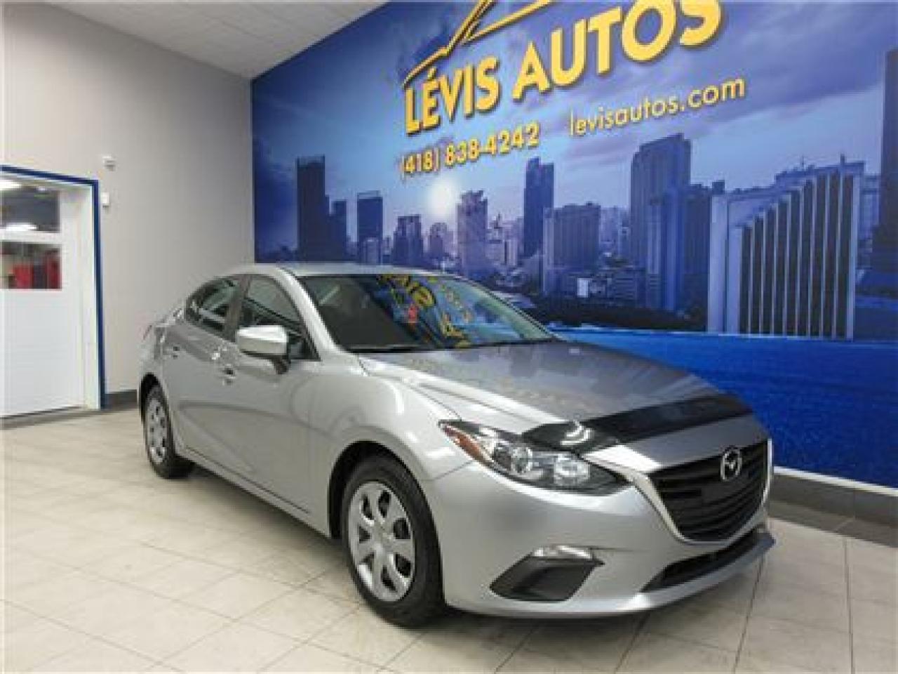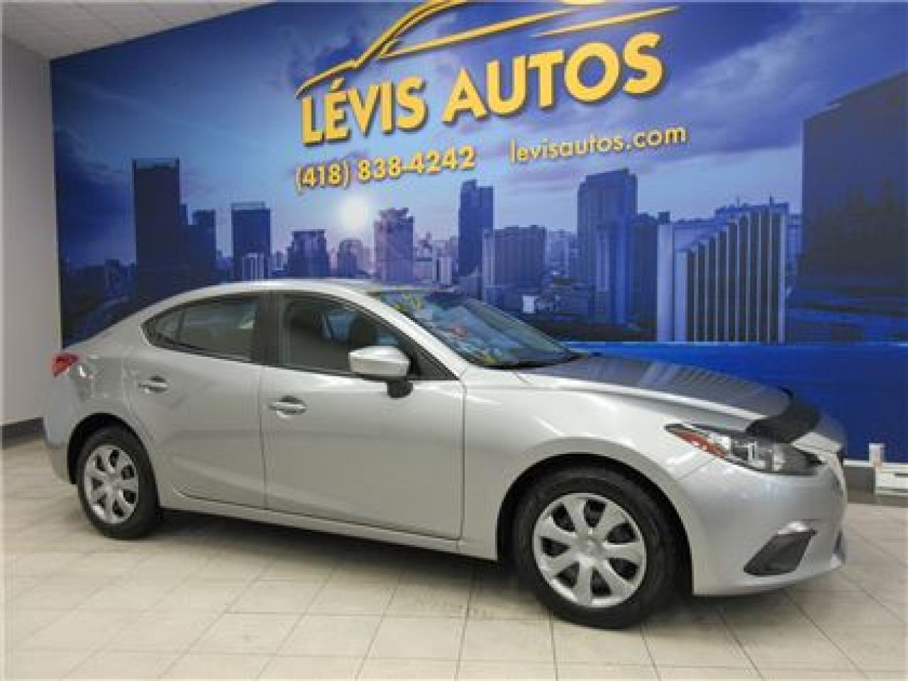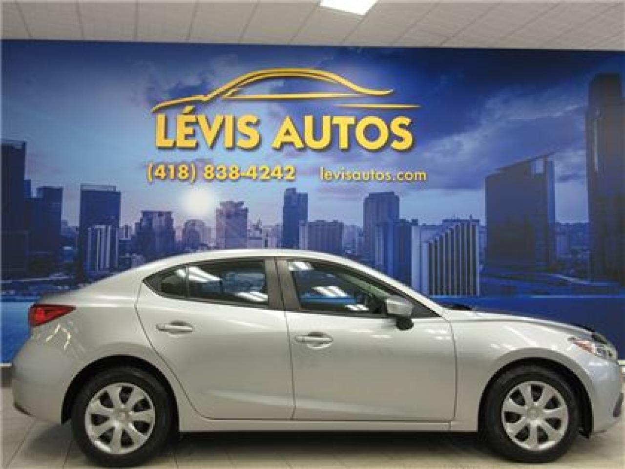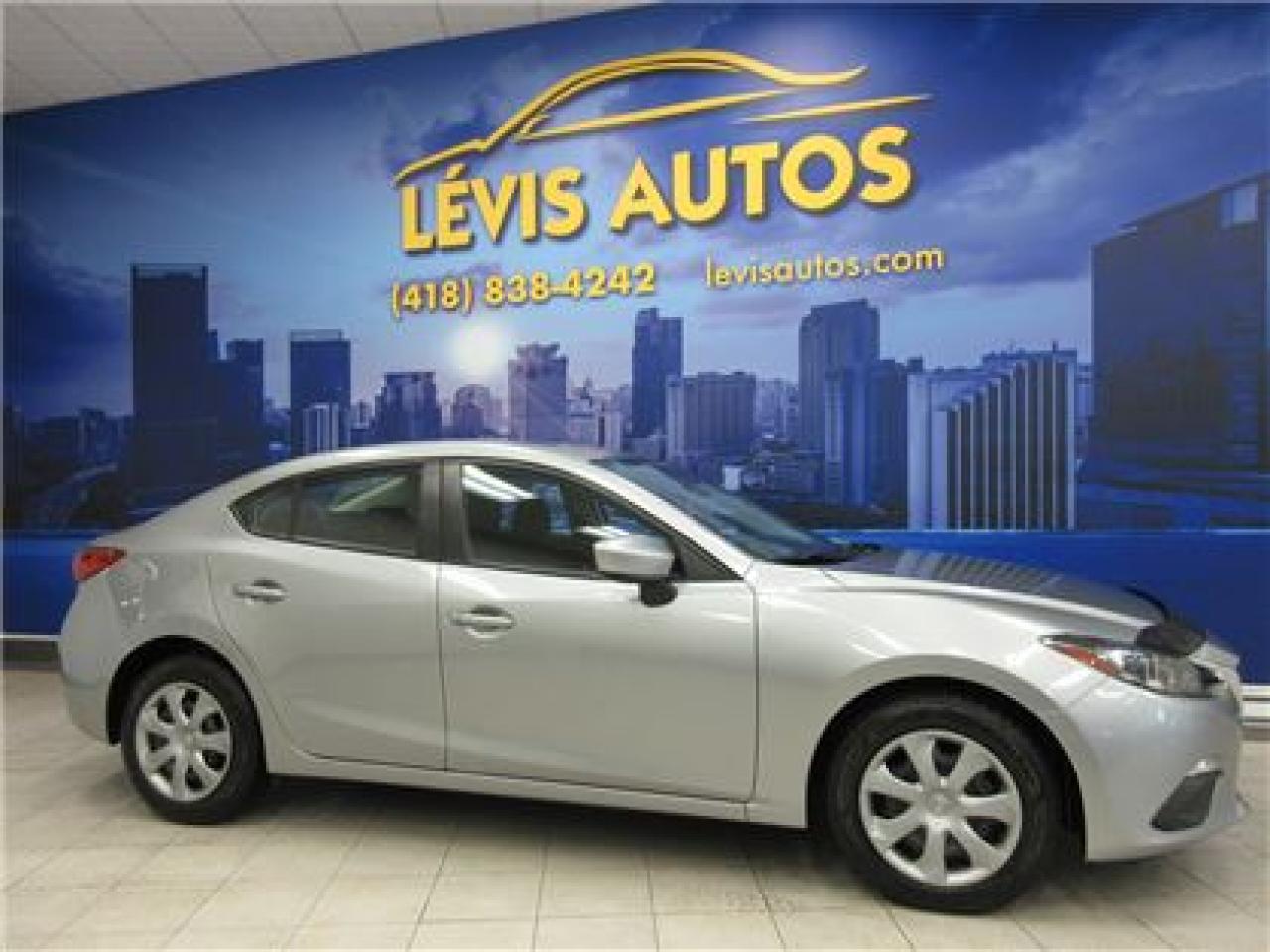 MAZDA 3 2015 GX SKYACTIV AVEC SEULEMENT 60300 KM CERTIFIÉ ET N'AYANT JAMAIS ÉTÉ ACCIDENTÉ (RAPPORT CARPROOF DISPONIBLE) MOTEUR 2.0 LITRES SKYACTIV D'EXCELLENTE RÉPUTATION OFFRANT UNE TRÈS BONNE PUISSANCE EN PLUS D'ÊTRE EXTRÊMEMENT ÉCONOMIQUE. TRANSMISSION 6 VITESSES MANUELLE, ROUE SUR PNEUS D'HIVER, LECTEUR CD MP3 AVEC PRISE AUXILIAIRE, BLUETOOTH, VOLANT AJUSTABLE ET TÉLESCOPIQUE, GROUPE ÉLECTRIQUE COMPLET, ENTRÉE ET DÉMARRAGE SANS CLEF+PUSH-START, ORDINATEUR DE BORD, RPM, FREIN ABS. BALANCE DE GARANTIE MAZDA 5 ANS OU 100000 KM MOTOPROPULSEUR FINISSANT LE 27 JANVIER 2020 (GARANTIE PROLONGÉ DISPONIBLE À PRIX IMBATTABLE AVEC LE CAA ET PPP) TAUX DE FINANCEMENT À PARTIR DE SEULEMENT 4.69%. VÉHICULE EXTRÊMEMENT PROPRE A VOIR ABSOLUMENT! POUR PLUS D'INFOS CELL:418-554-7565/418-838-4242. NOUS SOMMES SITUÉ AU 4585 BOULEVARD GUILLAUME-COUTURE LÉVIS G6W-6M6.LE PLUS GRAND CHOIX DE VÉHICULES USAGÉS À LÉVIS. AU PLAISIR DE VOUS SERVIR! VISITEZ NOTRE SITE INTERNET WWW.LEVISAUTOS.COM